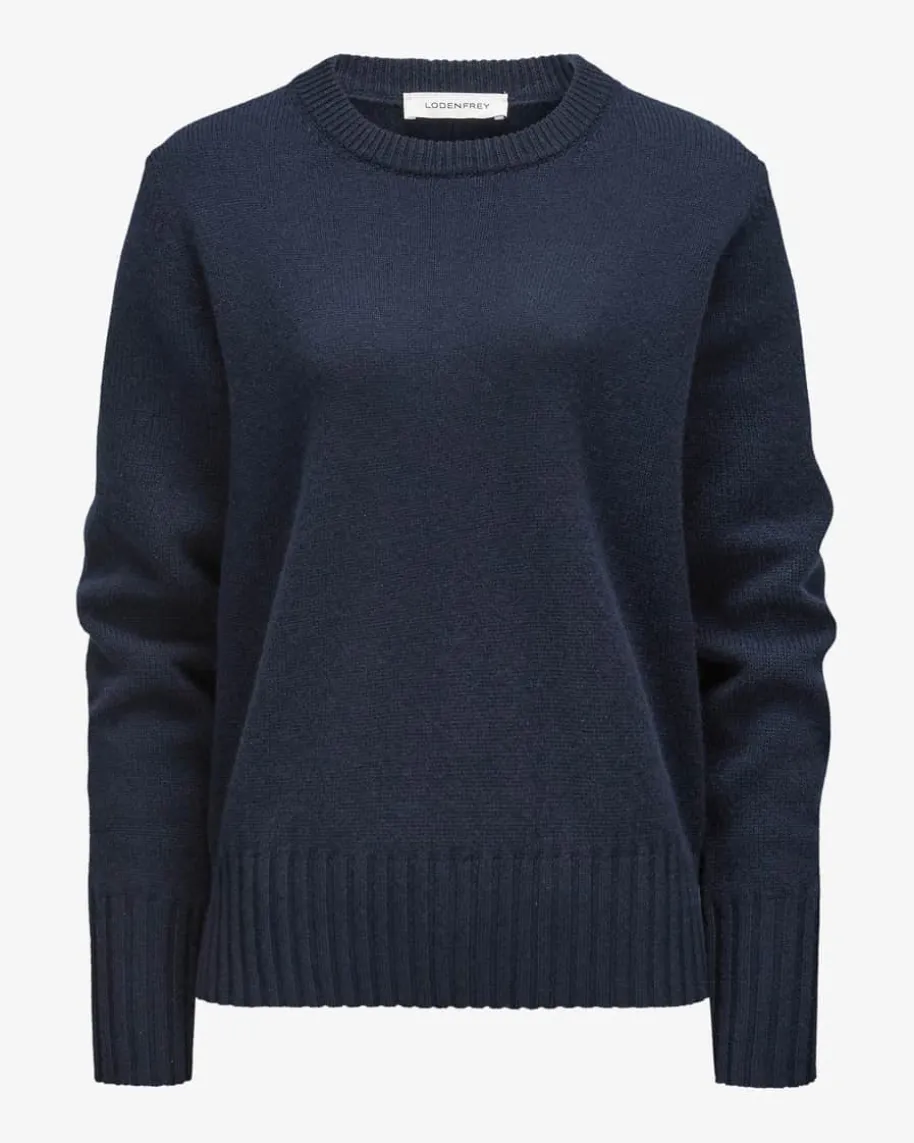 Cashmere-Pullover für Damen von LODENFREY in Marine. Das Modell aus weicherCashmere-Qualität präsentiert sich dank der schlichten Schnittführung alsvielseitiges Essential für diverse Looks.