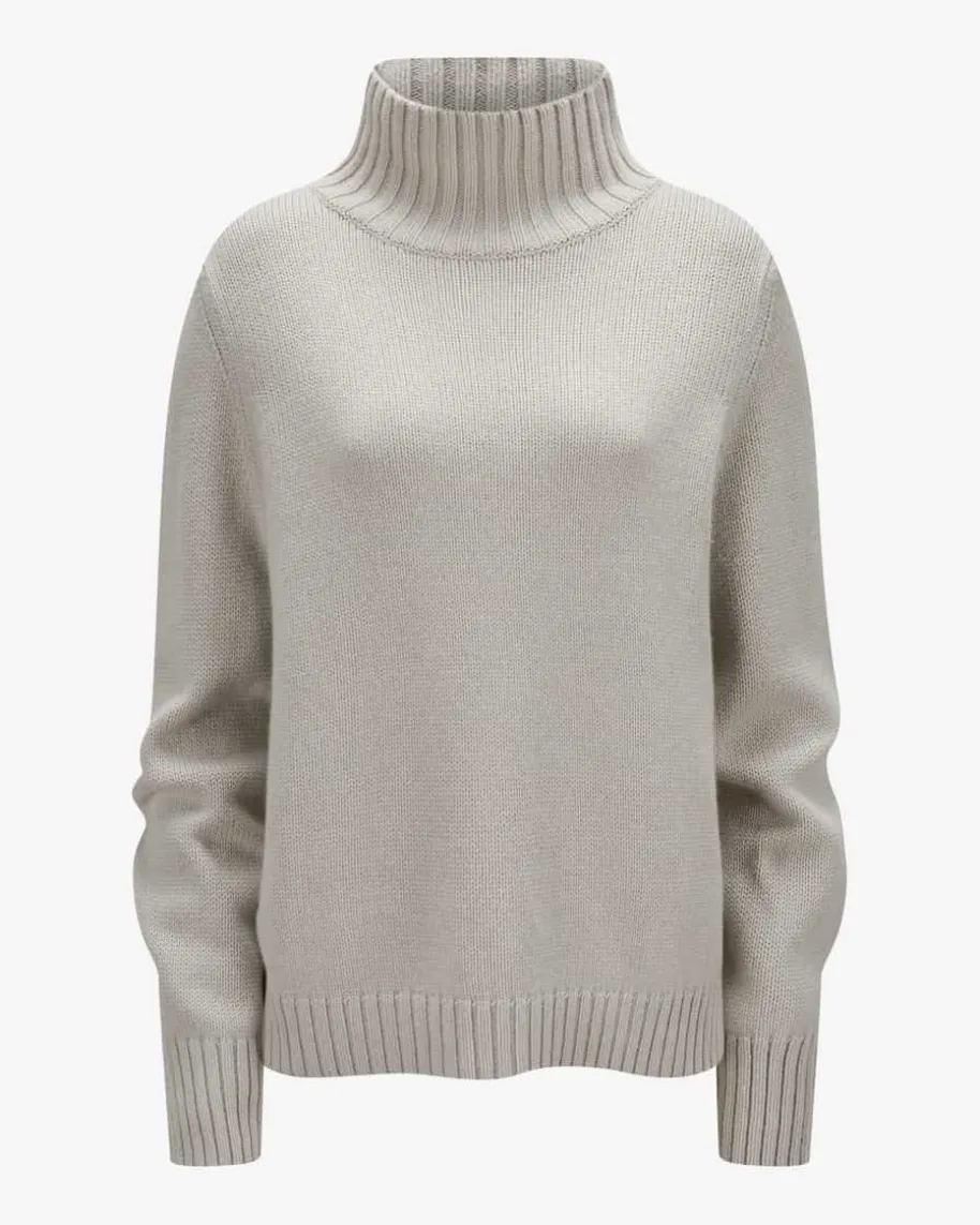 Cashmere-Pullover für Damen von Allude in Creme. Das Münchner Label wurde 1993von Andrea Karg gegründet und ist bekannt für luxuriöse Strickmode aus edlemCashmere. Auch dieses Modell überzeugt mit hochwertiger Cashmere-Qualität, diefür angenehmen Tragekomfort sorgt. Der hohe Stehkragen und geschlitzteÄrmelenden runden den zeitlosen Basic-Style harmonisch ab.