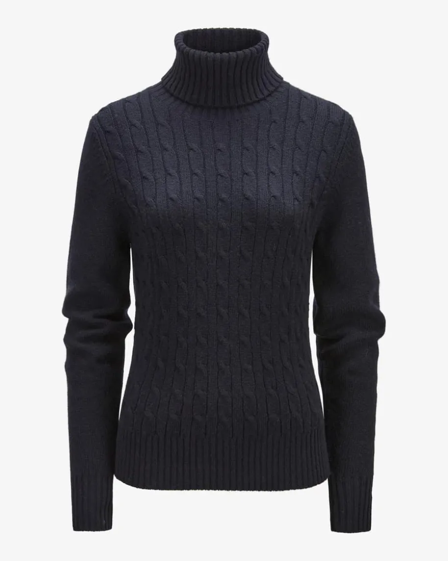 Cashmere-Pullover für Damen von Allude in Navy. Das Münchner Label wurde 1993von Andrea Karg gegründet und ist bekannt für luxuriöse Strickmode aus edlemCashmere. Auch dieses Modell überzeugt mit hochwertiger Cashmere-Qualität, diefür angenehmen Tragekomfort sorgt. Der Rollkragen und das feine Zopfstrickmusterrunden den femininen Style harmonisch ab.