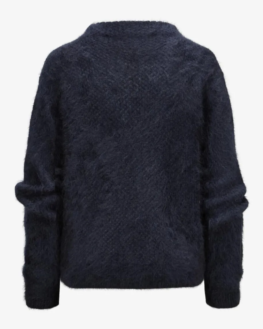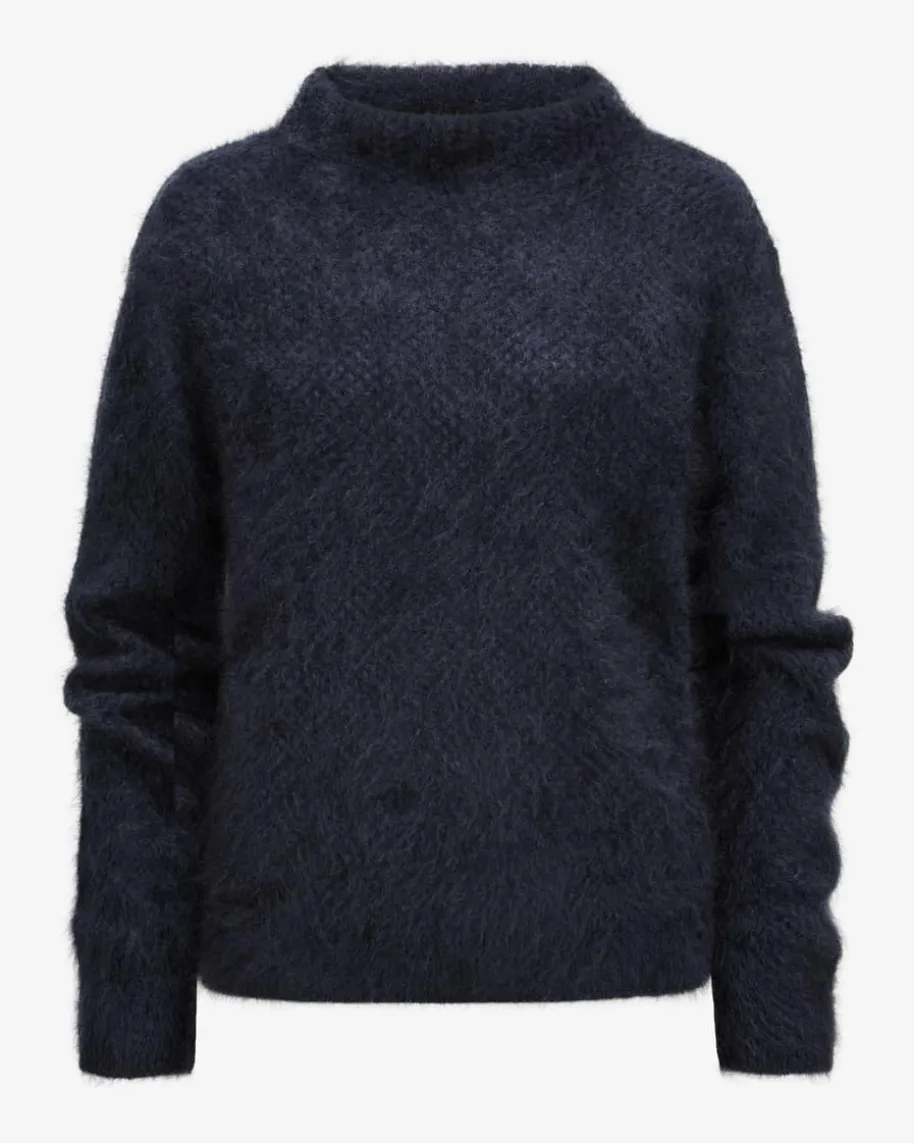Cashmere-Pullover für Damen von Windsor in Navy. Das Modell punktet mitoptischen sowie haptischen Highlights dank der flauschigen Brushed-Cashmere-Qualität sowie dem modischen Lochstrickmuster – Ein hochwertiger Casual-Begleiter mit Stil.
