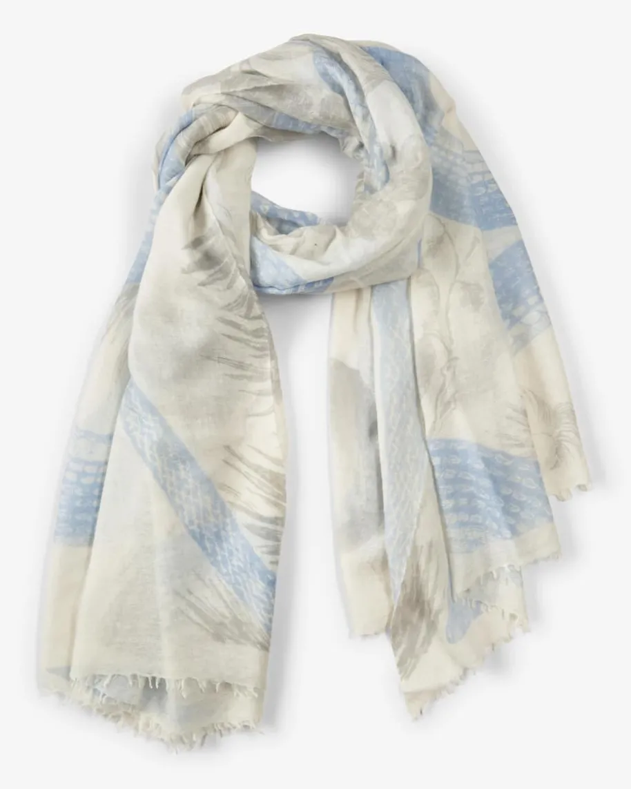 Cashmere-Schal für Damen von Friendly Hunting in Hellblau, Creme und Hellgrau.Aushochwertiger Cashmere-Wolle handgefertigt, begeistert das leichte Modell mitstilvollem Allover-Muster und besonders weichem Griff. Logo-Details und Fransenan den Enden runden den exklusiven Look gekonnt ab.