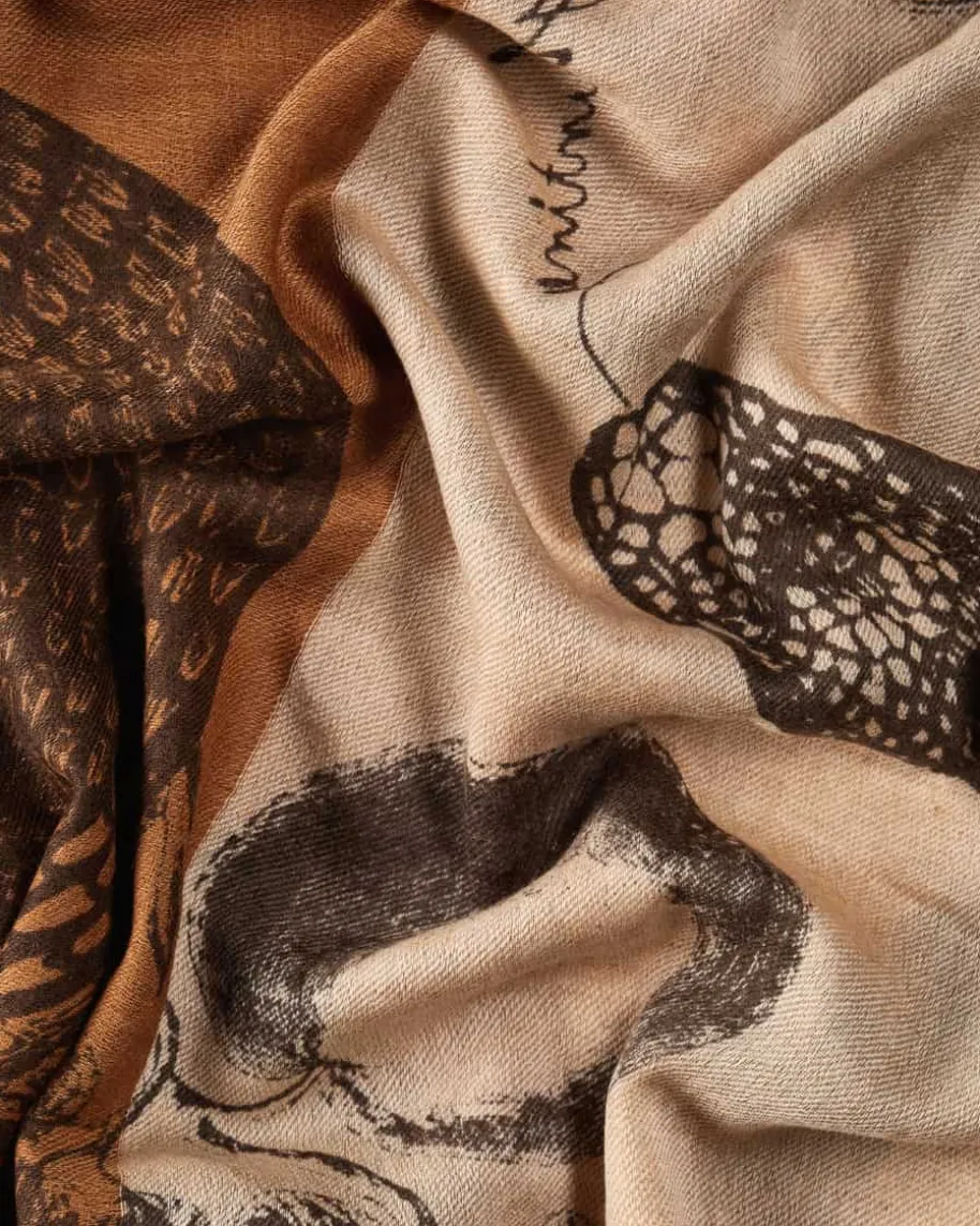 Cashmere-Schal für Damen von Friendly Hunting in Ocker und Beige. Diehochwertige, weiche Cashmere-Verarbeitung sorgt für angenehme Tragemomente,während das modische Allover-Dessin sowie dezente Fransen-Details ein stilvollesAccessoire kreieren.