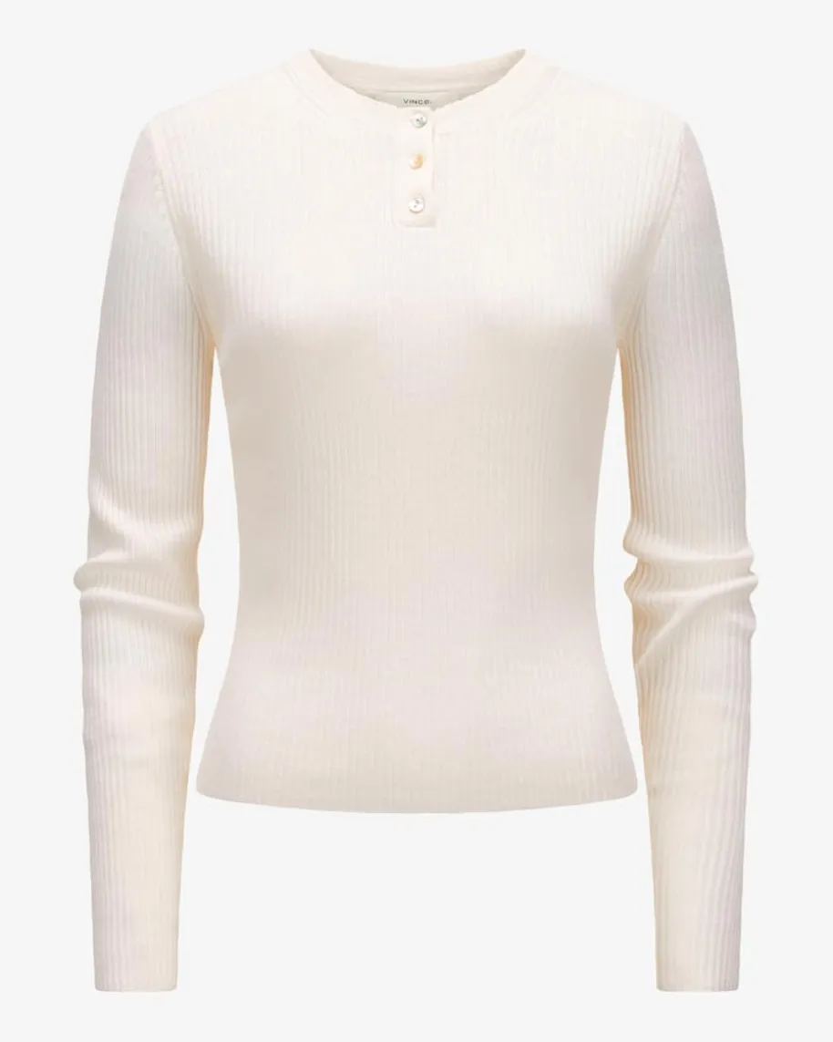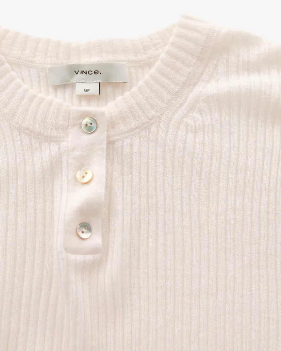 Cashmere-Seiden-Pullover für Damen von Vince in Creme. Das Label steht fürkalifornisch inspirierte Mode mit mühelosem Stil – raffinierte, unkomplizierteTeile mit besonderer Leichtigkeit. Auch dieses Modell überzeugt mit einemweichen und leichten Cashmere-Seiden-Mix und begeistert als zeitloses Basic inlegerer Henleyshirt-Optik.