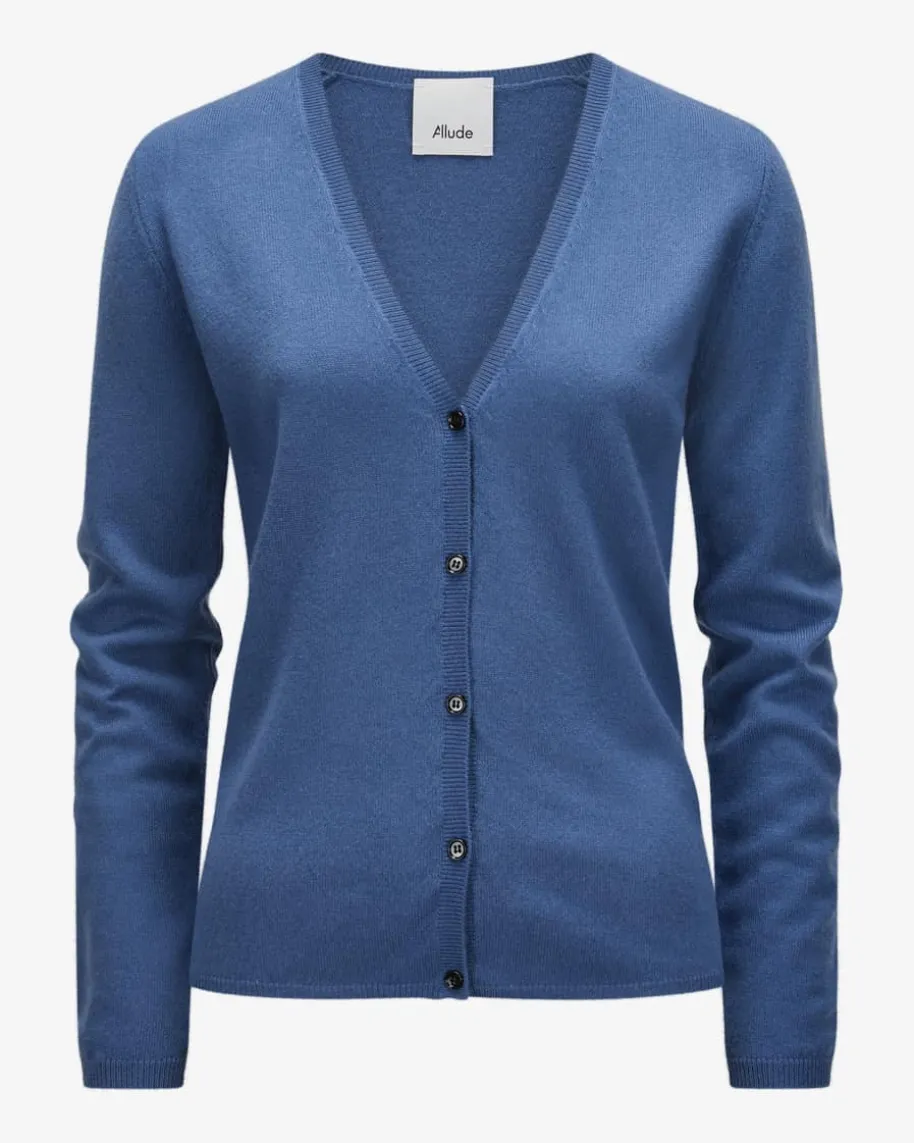 Cashmere-Strickjacke für Damen von Allude in Rauchblau. Das Münchner UnternehmenAllude steht für Mode, die Selbstbewusstsein und zeitlose Individualitätausstrahlt. Gefertigt aus hochwertiger Cashmere-Wolle, besticht das schlichteModell mit besonders weichem Griff und leichter Strick-Haptik, wodurch einzeitloses Essential entsteht.