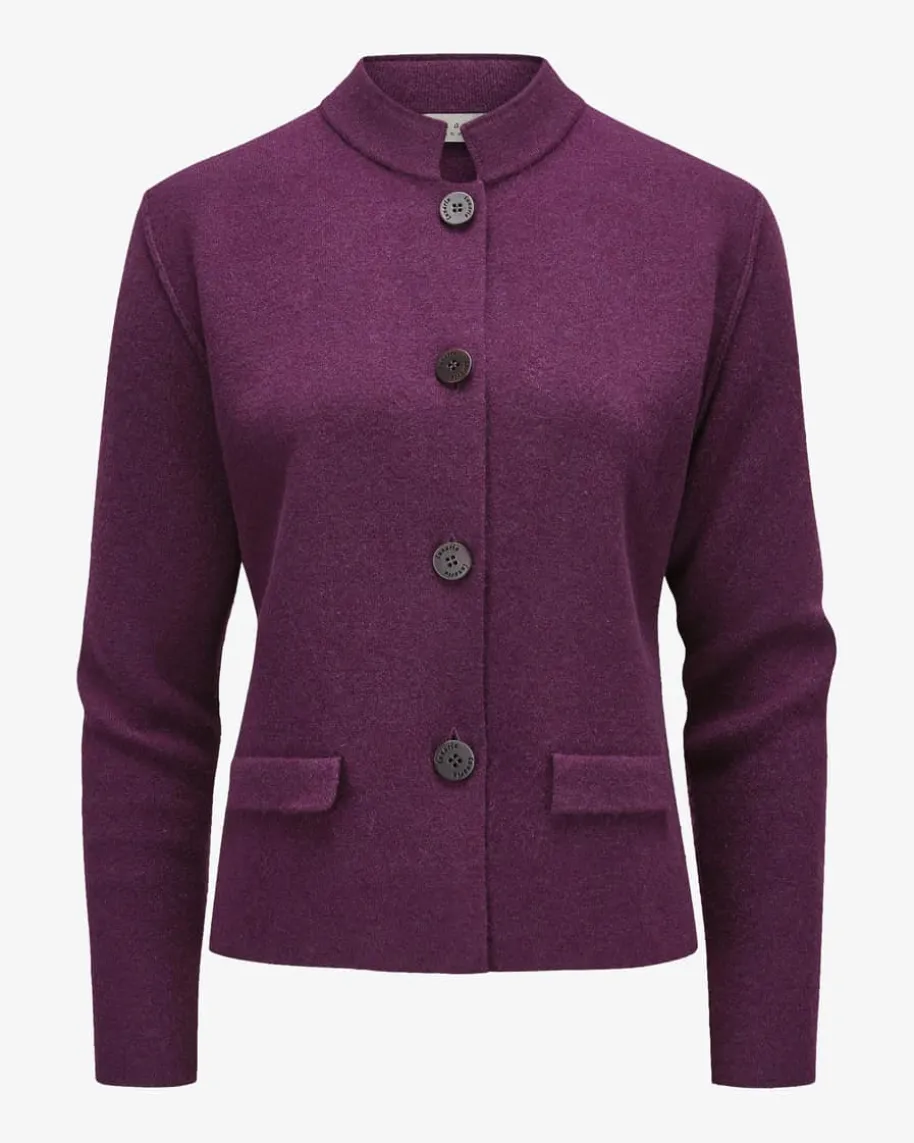 Cashmere-Strickjacke für Damen von Lunaria in Aubergine. Dank der Verwendung vonhochwertiger Cashmere-Wolle besticht das Modell mit besonders weicher Strick-Qualität, während das klassische Design einen zeitlos-modernen Favoriten fürIhre Casual-Garderobe schafft.