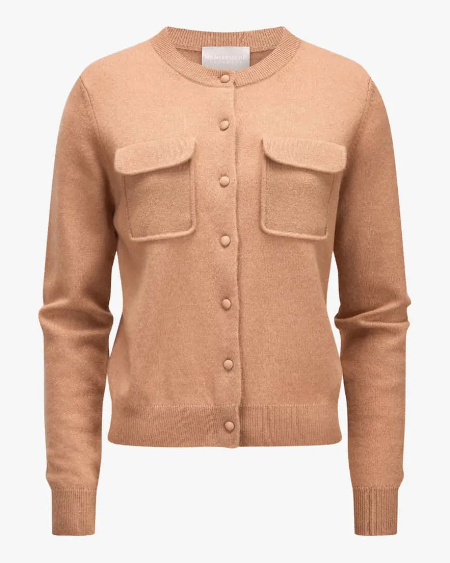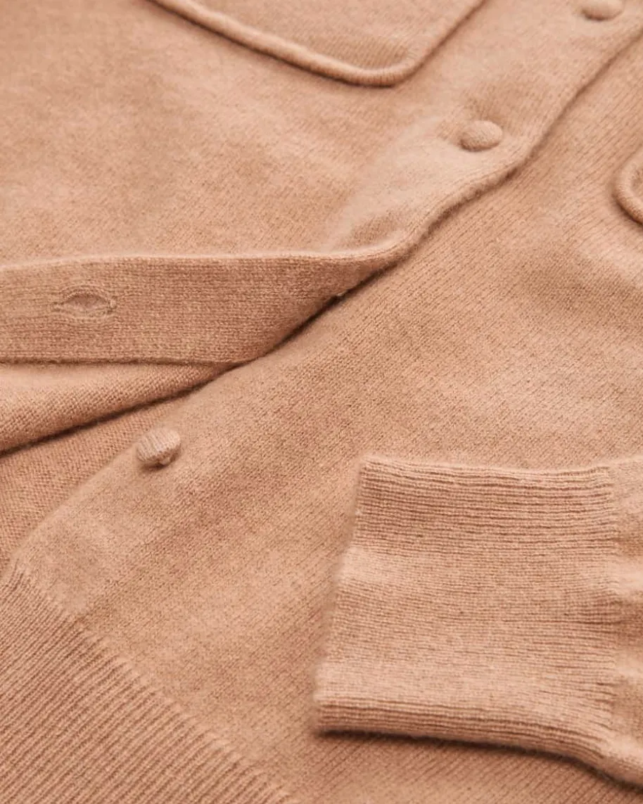 Cashmere-Strickjacke für Damen von Hemisphere in Camel. Die deutsche Marke stehtfür luxuriöse Strick- und Kaschmirteile mit Fokus auf Qualität, Weichheit undzeitlose Farben. Auch dieses Modell in hochwertiger Cashmere-Qualität überzeugtmit angenehmer Haptik, während die Taschen und Stoff bezogenen Knöpfe dasGesamtbild harmonisch abrunden und einen zeitlosen Cashmere-Begleiter schaffen.