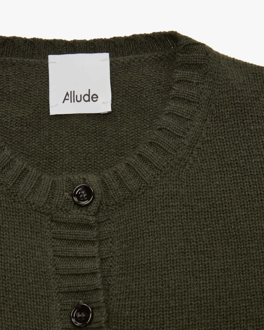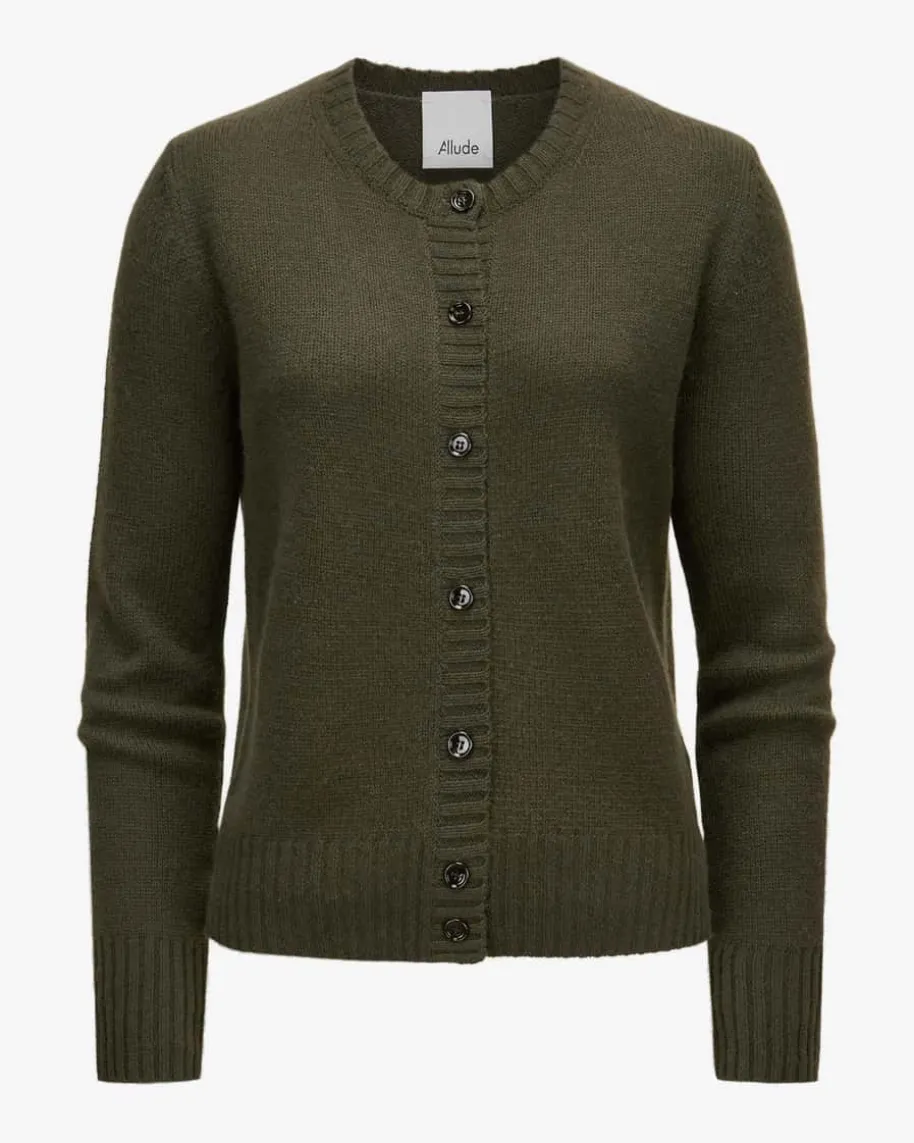 Cashmere-Strickjacke für Damen von Allude in Dunkeloliv. Das MünchnerUnternehmen Allude steht für Mode, die Selbstbewusstsein und zeitloseIndividualität ausstrahlt. Gefertigt aus hochwertiger Cashmere-Wolle, bestichtdas Modell mit besonders weichem Griff, während die schlichte Aufmachung imklassischen Strick-Design einen zeitlosen Casual-Look schafft.