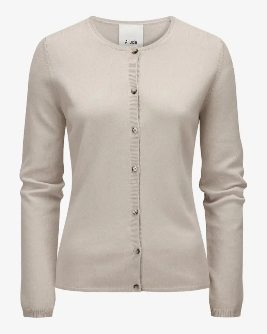 Cashmere-Strickjacke für Damen von Allude in Stein. Das Münchner UnternehmenAllude steht für Mode, die Selbstbewusstsein und zeitlose Individualitätausstrahlt. Gefertigt aus hochwertiger Cashmere-Wolle, besticht das schlichteModell mit besonders weichem Griff und leichter Strick-Haptik, wodurch einzeitloses Essential entsteht.