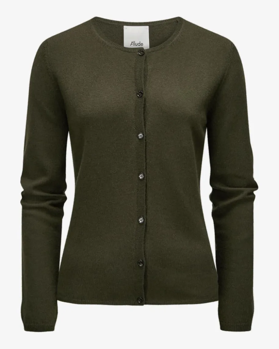 Cashmere-Strickjacke für Damen von Allude in Oliv. Das Münchner UnternehmenAllude steht für Mode, die Selbstbewusstsein und zeitlose Individualitätausstrahlt. Gefertigt aus hochwertiger Cashmere-Wolle, besticht das schlichteModell mit besonders weichem Griff und leichter Strick-Haptik, wodurch einzeitloses Essential entsteht.