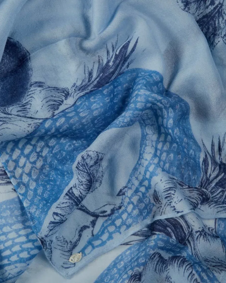 Cashmere-Tuch für Damen von Friendly Hunting in Hellblau, Navy und Blau. LassenSie sich durch die hochwertige und besonders leichte Cashmere-Qualität haptischverwöhnen, während das modische Allover-Dessin ein stilvolles Accessoirekreiert.