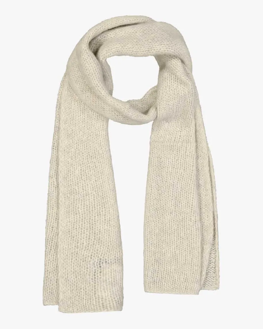 Chantay Schal für Damen von Lu Ren in Sand. Der gestrickteSchal aus hochwertigen Cashmere-Seiden-Fasern begeistert durch den weichen Griffin Kombination mit der leicht melierten Optik.