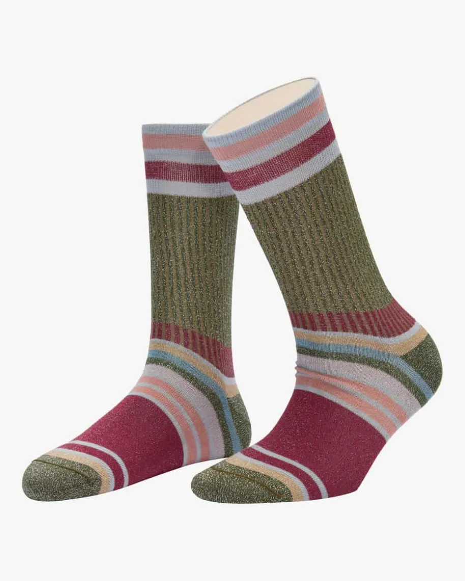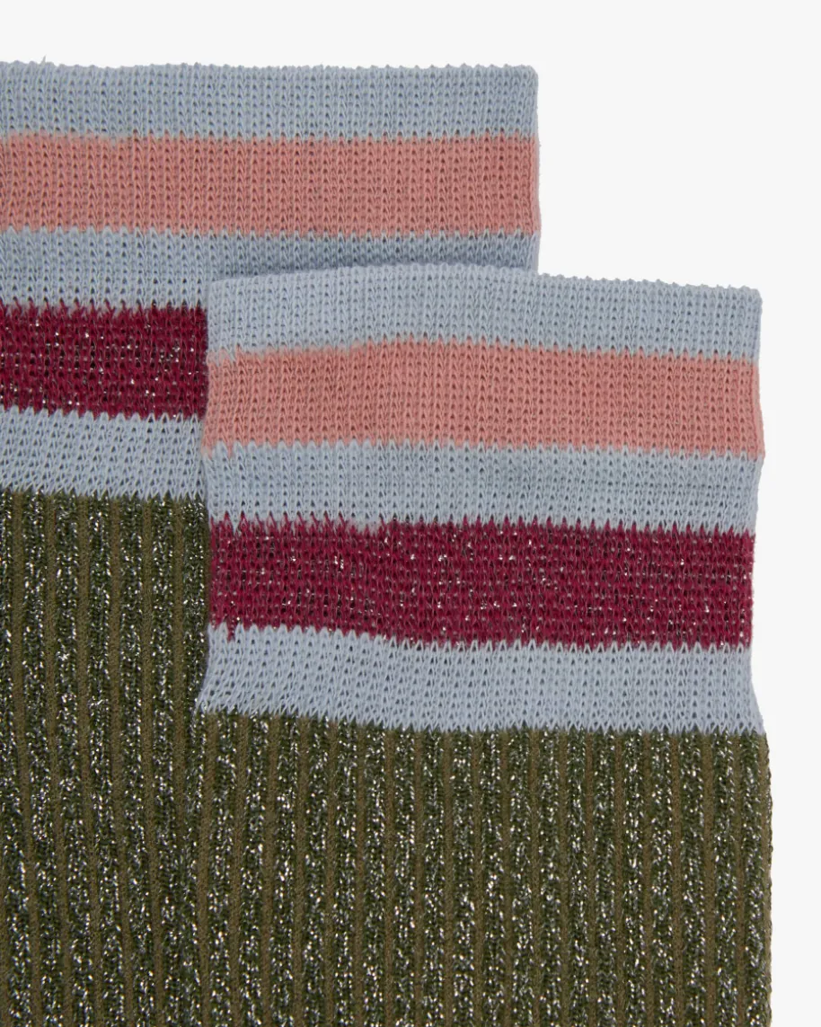 Chapo Strümpfe für Damen von Alto in Moosgrün, Dunkelrot und Eisblau. Made inItaly – 1923 gegründet, zeichnet das Unternehmen die Verbindung von Traditionund Exzellenz aus. Die Socke ist nicht nur ein Modeaccessoire, sonderninterpretiert den Stil und die Persönlichkeit des Trägers. Auch dieseselastische Modell begeistert dank changierenden Glitzerfasern und Streifenmusterin modischer Aufmachung.