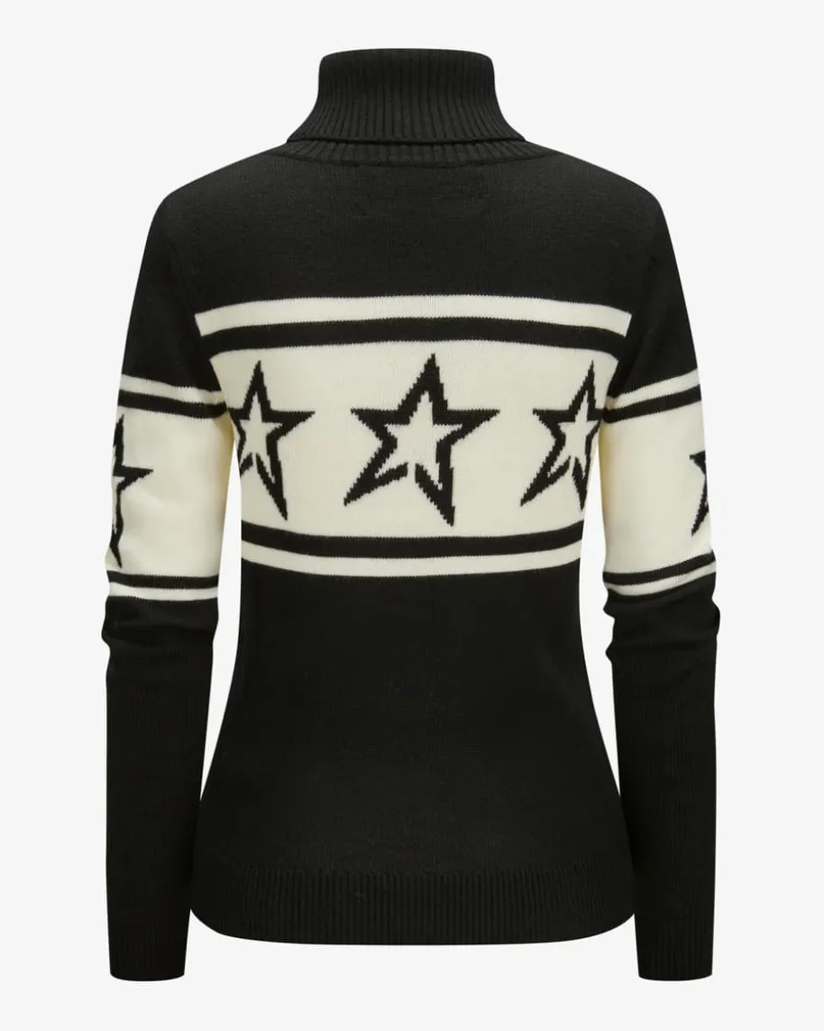 Chopper Rollkragenpullover für Damen von Perfect Moment in Schwarz und Weiß.Während die hochwertige Merinowolle für einen besonders weichen Griff sorgt,kreiert das zeitlose Design mit labeltypischen Stern-Intarsien einen vielseitigkombinierbaren Strick-Liebling für stilvolle Winter- oder Ski-Looks.