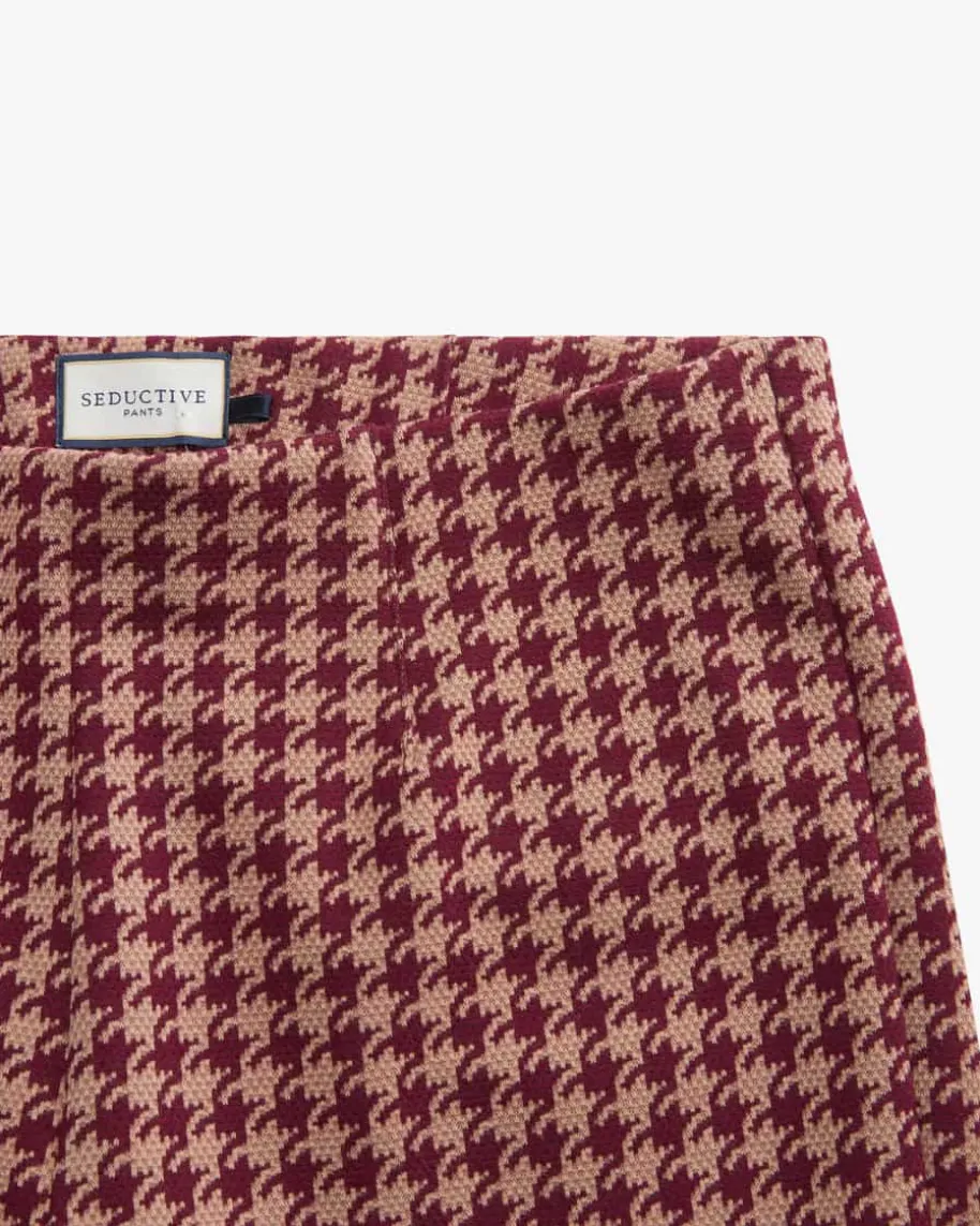 Cindessa Hose für Damen von Seductive in Rot und Camel. Das Label steht seit2007 für luxuriöse Hosen mit femininer Silhouette, zeitlosem Design und höchsterQualität. Auch dieses schmale Modell präsentiert sich in eleganter Aufmachungmit stilvollem Hahnentritt-Muster, während die elastische Qualität angenehmeTragemomente garantiert.