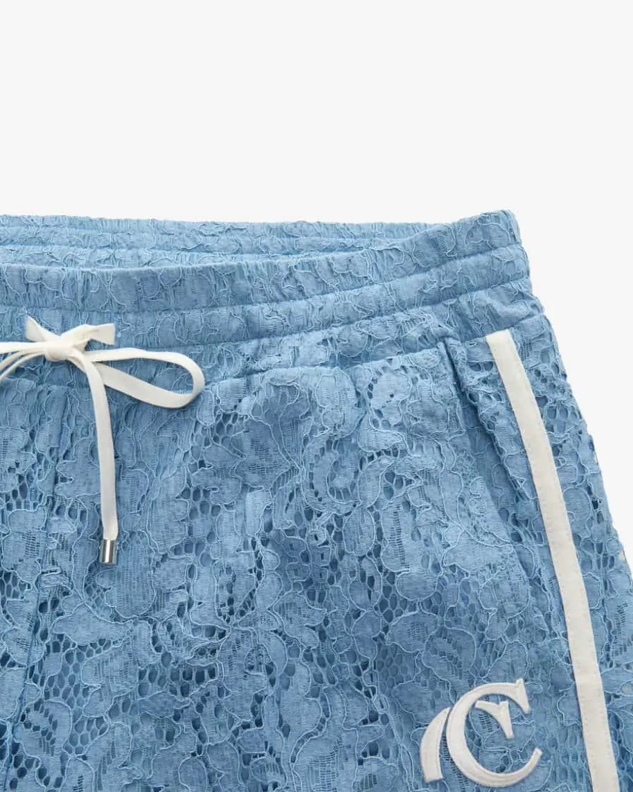 Clara Hose für Damen von Cambio in Hellblau und Weiß. Das Modell präsentiertsich mit weitem sowie verkürztem Bein modisch, während die zarte Spitzen-Aufmachung zusammen mit den sportiven Galonstreifen einen extravaganten Lookkreiert. Der elastische Bund mit kontrastierendem Tunnelzug rundet dasGesamtbild gekonnt ab.
