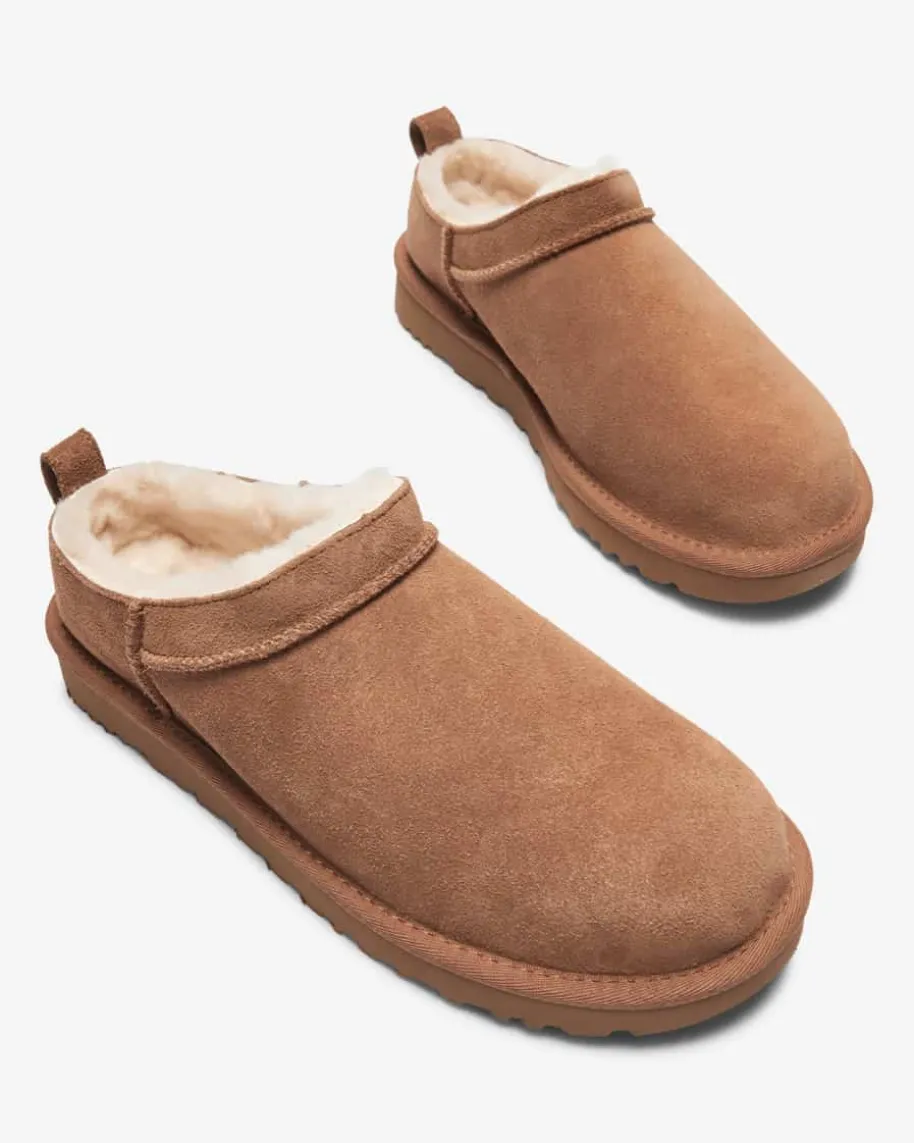 Classic Micro Pantoletten für Damen von Ugg in Hellbraun. Der Tragekomfort vonHausschuhen, während Sie unterwegs sind – Das Modell des Kult-Labels überzeugtdank dem weichen Lammfell-Futter mit einem hohen Wohlfühl-Faktor, während dashochwertige Veloursleder ein zeitloses Design kreiert. Dank der natürlichenWärmeregulierung können Sie selbst entscheiden, ob Sie die Schuhe mit oder ohneSocken tragen möchten.