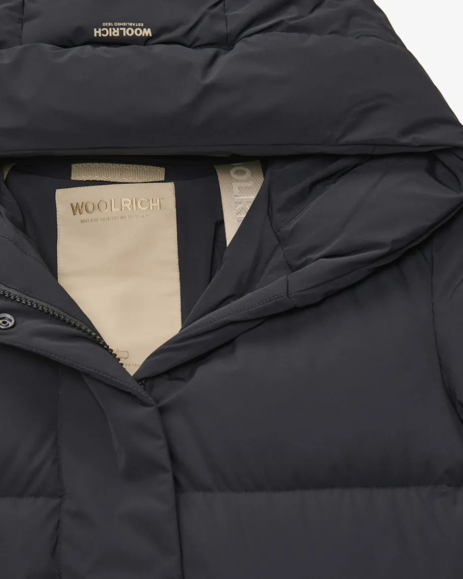 Cloud Madison Daunenmantel für Damen von Woolrich in Schwarz. 1830 von John Richin Pennsylvania gegründet, erfreute sich das Label damals schon großerBeliebtheit – vor allem im Outdoor-Bereich. Auch dieses Modell begeistert dankzahlreicher Funktionen sowie der warmen Daunen-Feder-Füllung als hochwertigerWinterbegleiter, während die klassische Steppung sowie die praktischen Trägerdas Gesamtbild harmonisch abrunden.