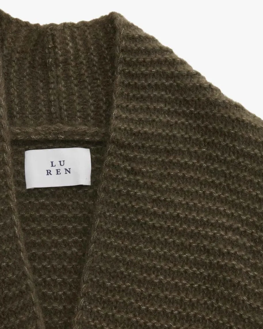 Clyne Cashmere-Seiden-Cardigan für Damen von Lu Ren in Khaki. Dank derVerwendung von hochwertigem Cashmere-Seiden-Mix besticht das Modell mitbesonders weichem Griff, während das legere Grobstrick-Design in Oversize-Passform einen komfortablen Casual-Favoriten für Ihre Herbst-Winter-Garderobeschafft.