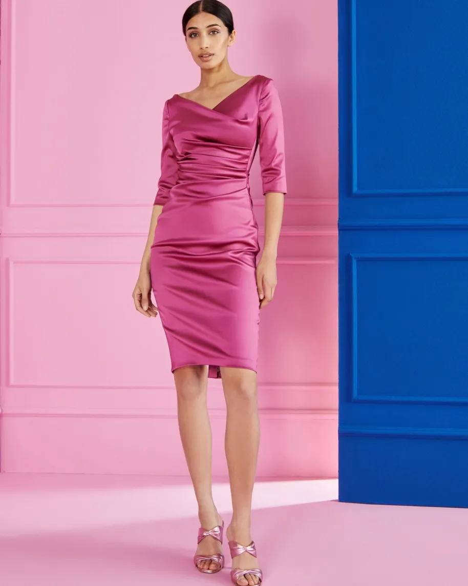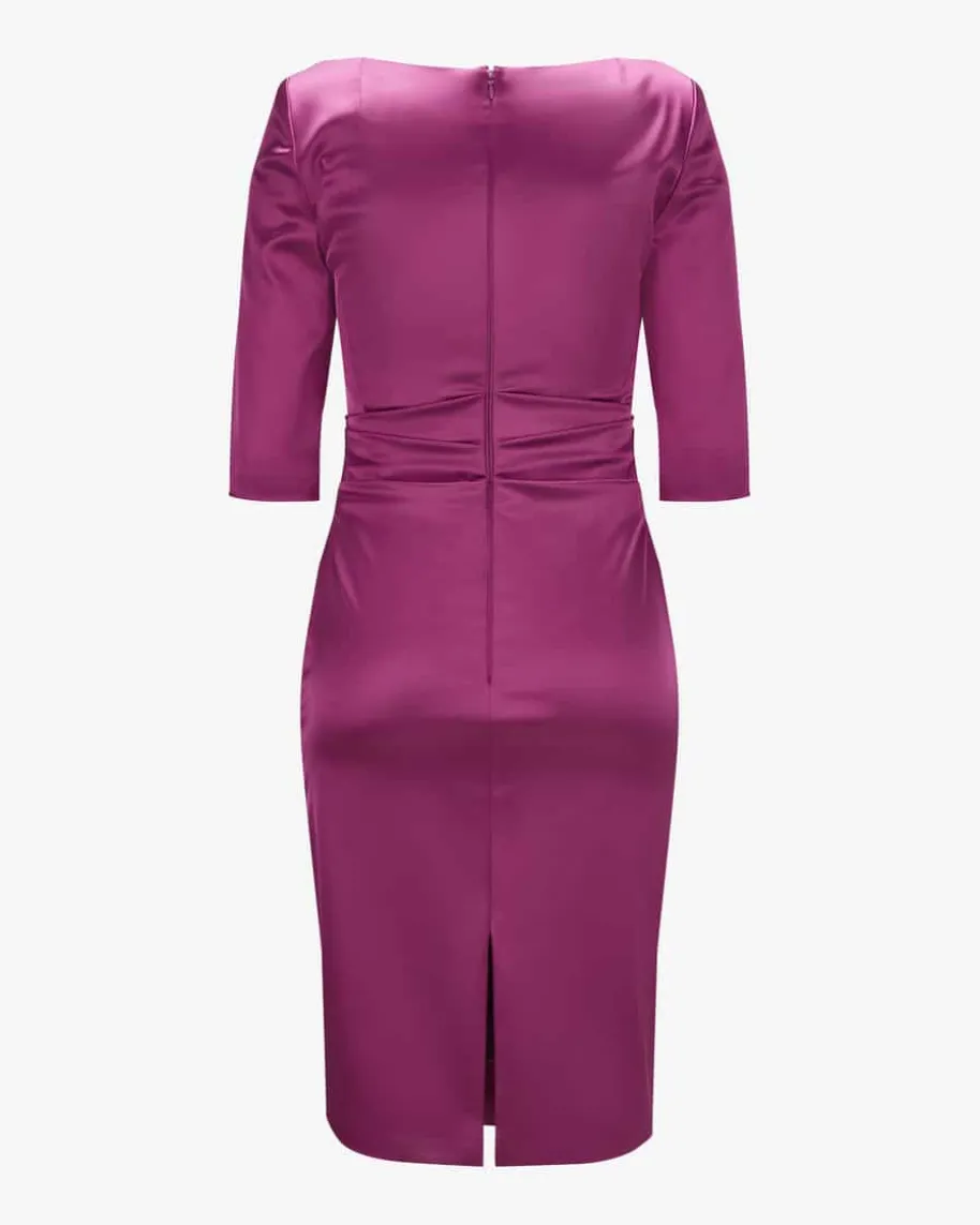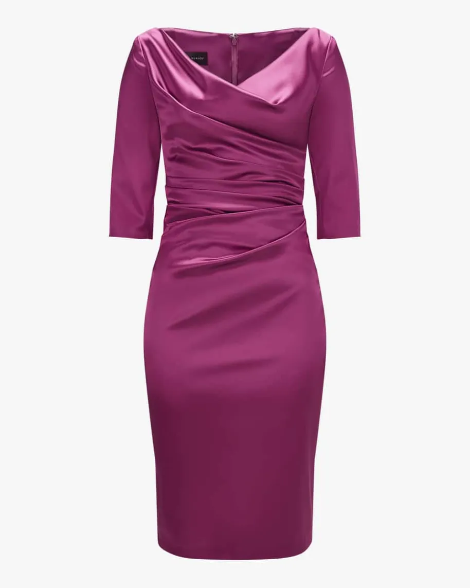 Cocktailkleid für Damen von Talbot Runhof in Himbeere. Made in Germany – Denktman an Talbot Runhof, kommen einem unweigerlich elegante und feminine Kleider inden Sinn. Mit femininen Raffungen und dem V-Ausschnitt, der Ihnen einraffiniertes Dekolleté zaubert, präsentiert sich der elegante Abendbegleiter.Zugleich vollendet die changierende Satin-Qualität das edle Gesamtbild stilvoll.