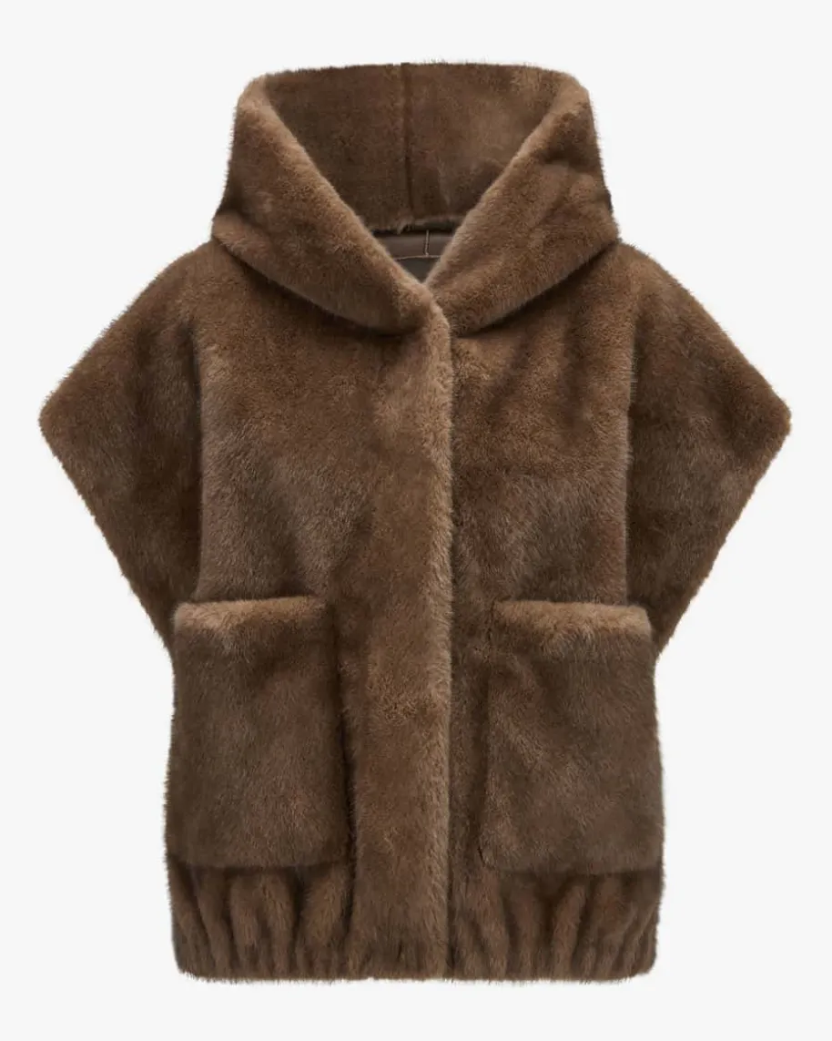 Colee Kunstfellweste für Damen von Hemisphere in Braun. Das Modell präsentiertsich dank der modischen Kunstpelz-Aufmachung als stilsicherer Begleiter inmoderner Oversize-Passform. – Dank des schlichten Designs ein vielseitigerFavorit mit Charme.