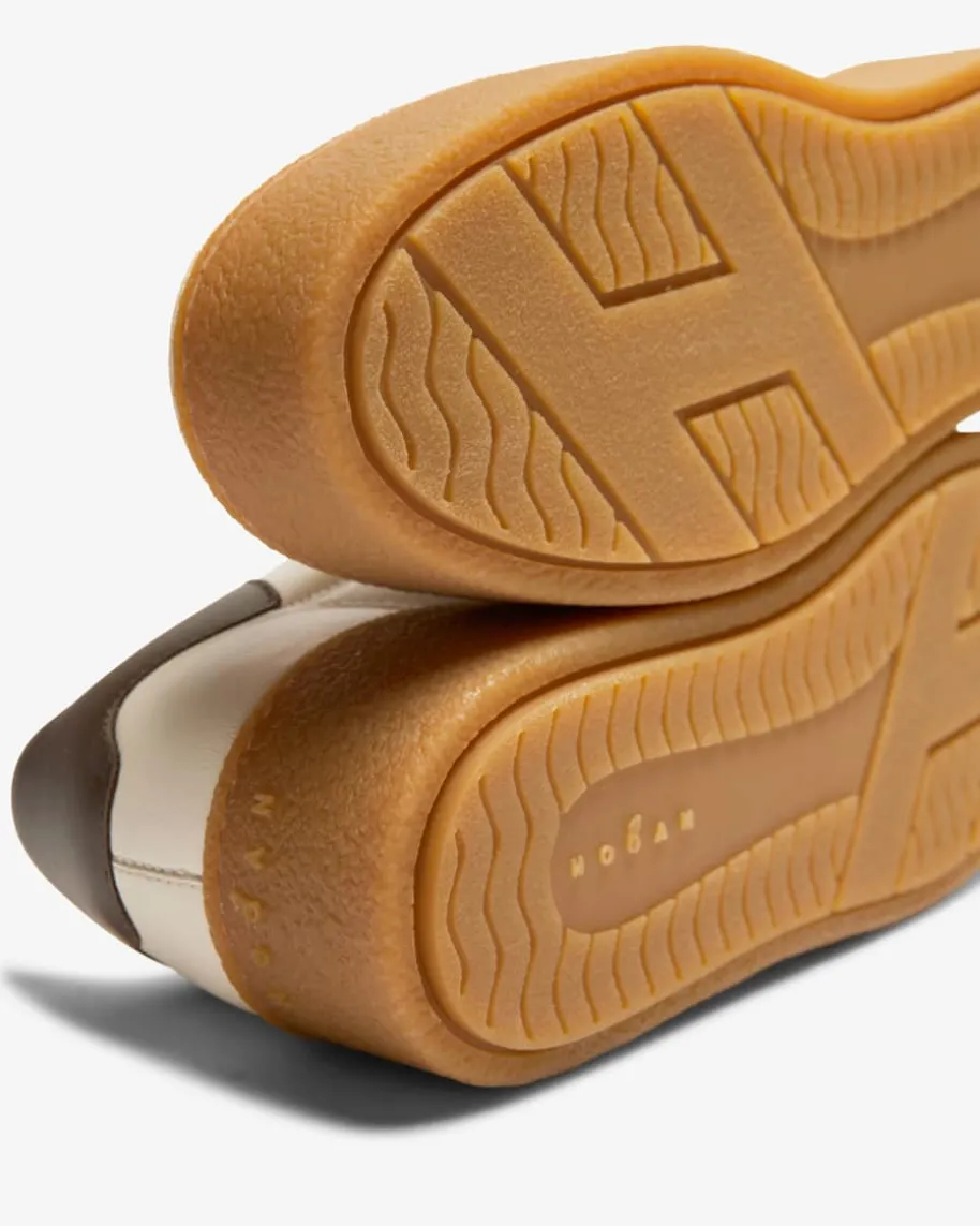 Cool Plateau Sneaker für Damen von Hogan in Weiß, Beige und Braun. Made in Italy- Das Label legt größten Wert auf hochwertige Verarbeitung und begeistert mitluxuriösem Design. Das Modell aus hochwertigem Veloursleder präsentiert sichdank markanter Plateau-Sohle in sportiver Aufmachung, während die farblichabgesetzten Partien einen modischen Retro-Touch verleihen. Zugleich sorgt diegepolsterte Memory Foam-Innensohle für besonders hohen Tragekomfort.