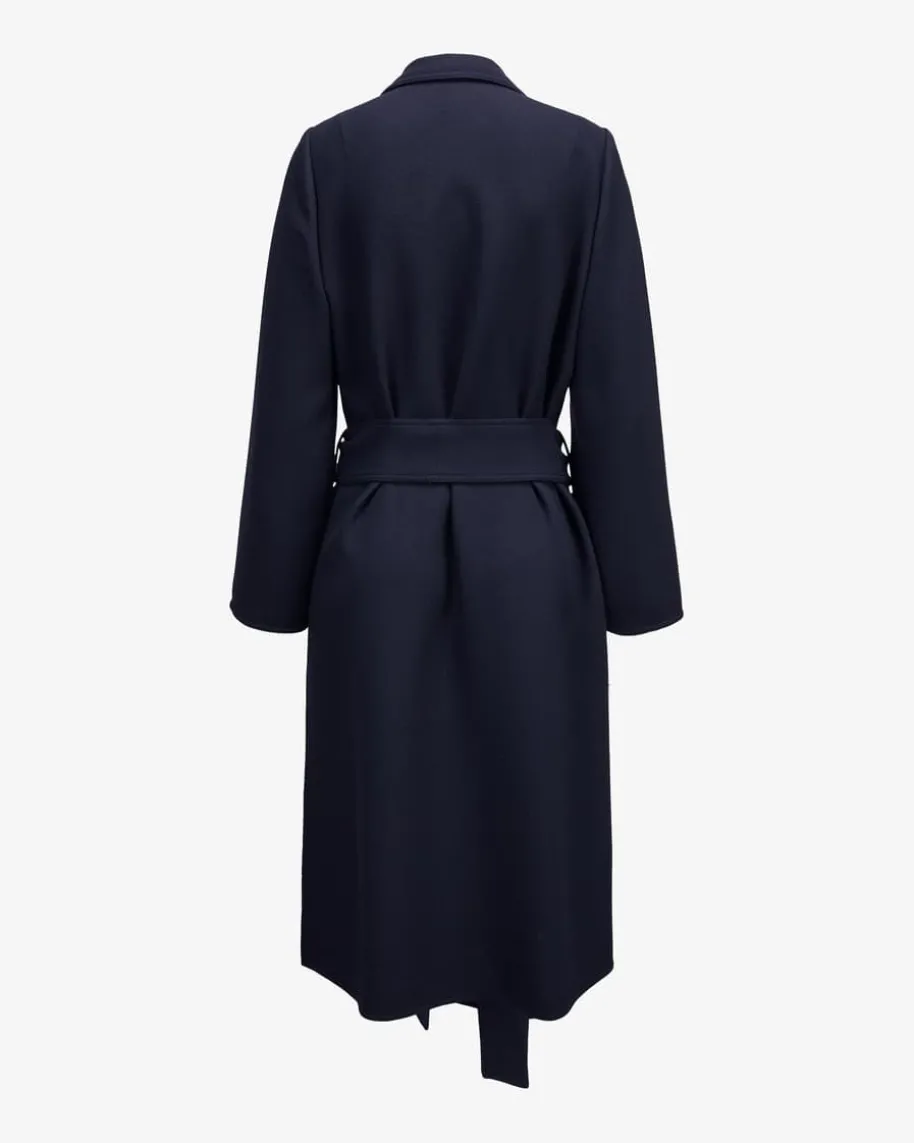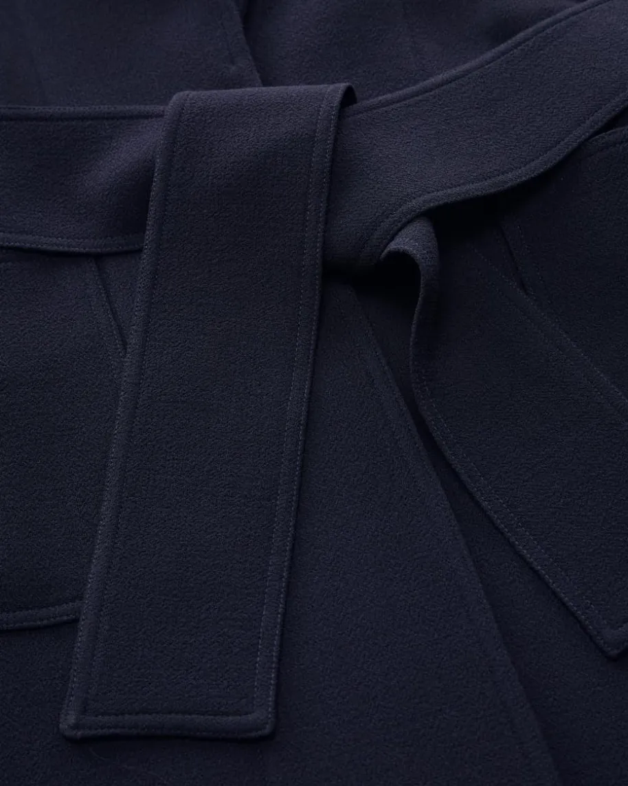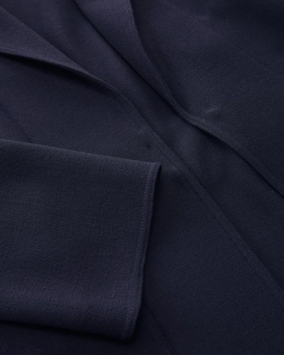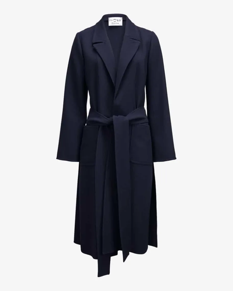 Crepe-Mantel für Damen von Pio O’Kan in Marine. Made in Germany – Das Modellbegeistert mit strukturierter Double-Crepe Ausführung aus leichter Schurwoll-Qualität, die für angenehmen Tragekomfort sorgt. Klassische Details und dasTaillenband zaubern einen feminin-elegante Silhouette.