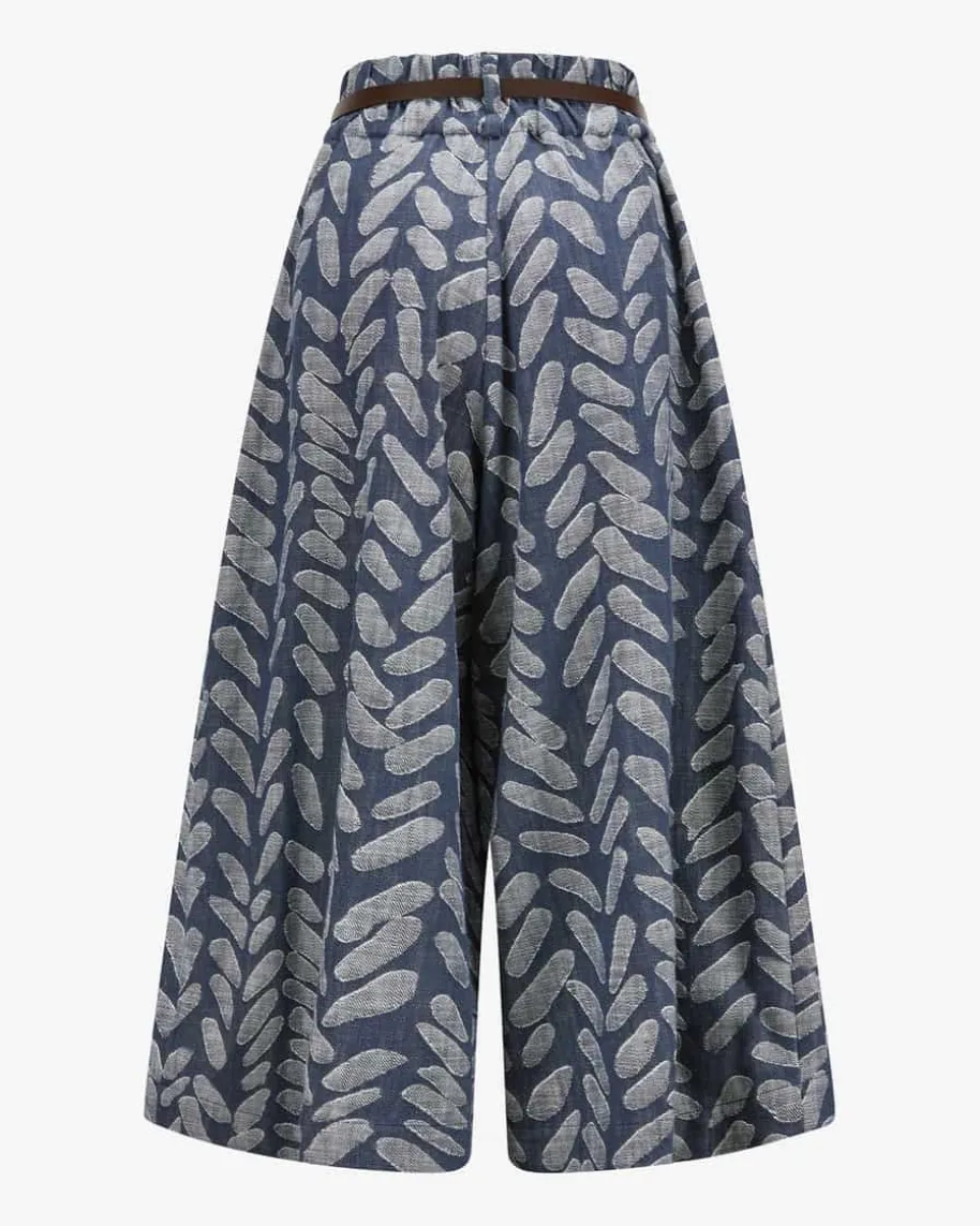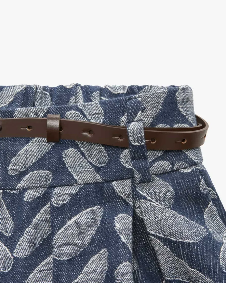 Culotte für Damen von Odeeh in Blau. Das Modell mit modernem Schnitt überzeugtmit hochwertiger Baumwoll-Qualität, während das Abstrakte-Dessin und die Denim-Aufmachung einen besonderen Begleiter für sommerliche Styles kreieren.