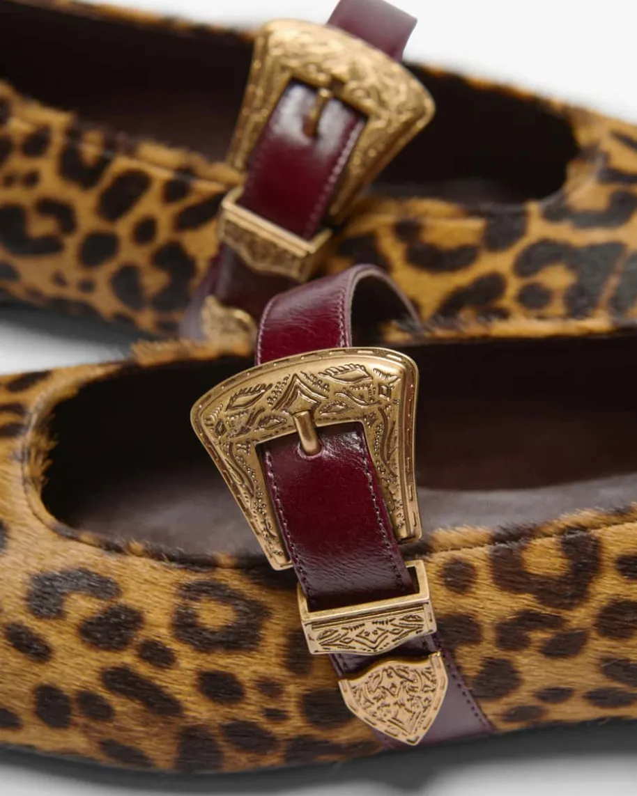 Dalma Fell-Ballerina für Damen von Festa in Dunkelbraun und Hellbraun. DasModell besticht in edler changierender Fell-Aufmachung im Allover-Leo-Dessin,während die eckige Form mit abgerundeten Kanten für einen raffinierten Twistsorgt. Der Riemen mit stilvoller Schnalle rundet den femininen Begleiter gekonntab.