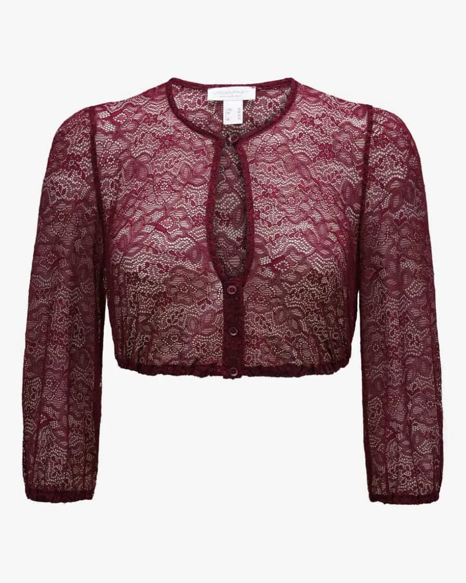 Daniela Dirndlbluse für Damen von LODENFREY München 1842 in Bordeaux. Dank derbesonders elastischen Spitzen-Verarbeitung sowie den dezenten Ballonärmelnüberzeugt das Modell mit hohem Tragekomfort und einem traditionell-romantischenCharakter.