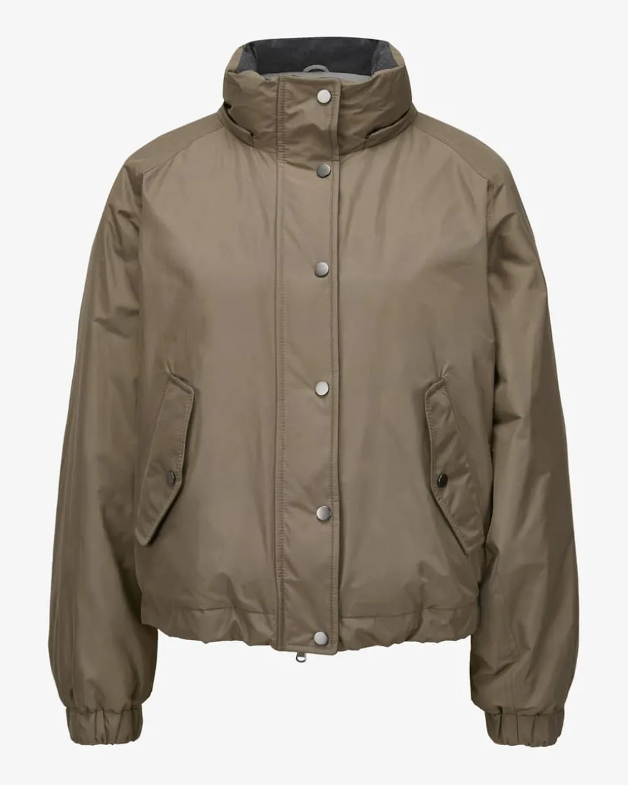 Daunen-Bomberjacke für Damen von Brunello Cucinelli in Taupe. Mit diesem Modellpräsentiert das italienische Label einen leichten und dank der Daunen-Feder-Füllung zugleich wärmenden Begleiter für angesagte Looks. Die weiteBomberjacken-Silhouette mit abnehmbarer Kapuze unterstreicht den legerenCharakter gekonnt.