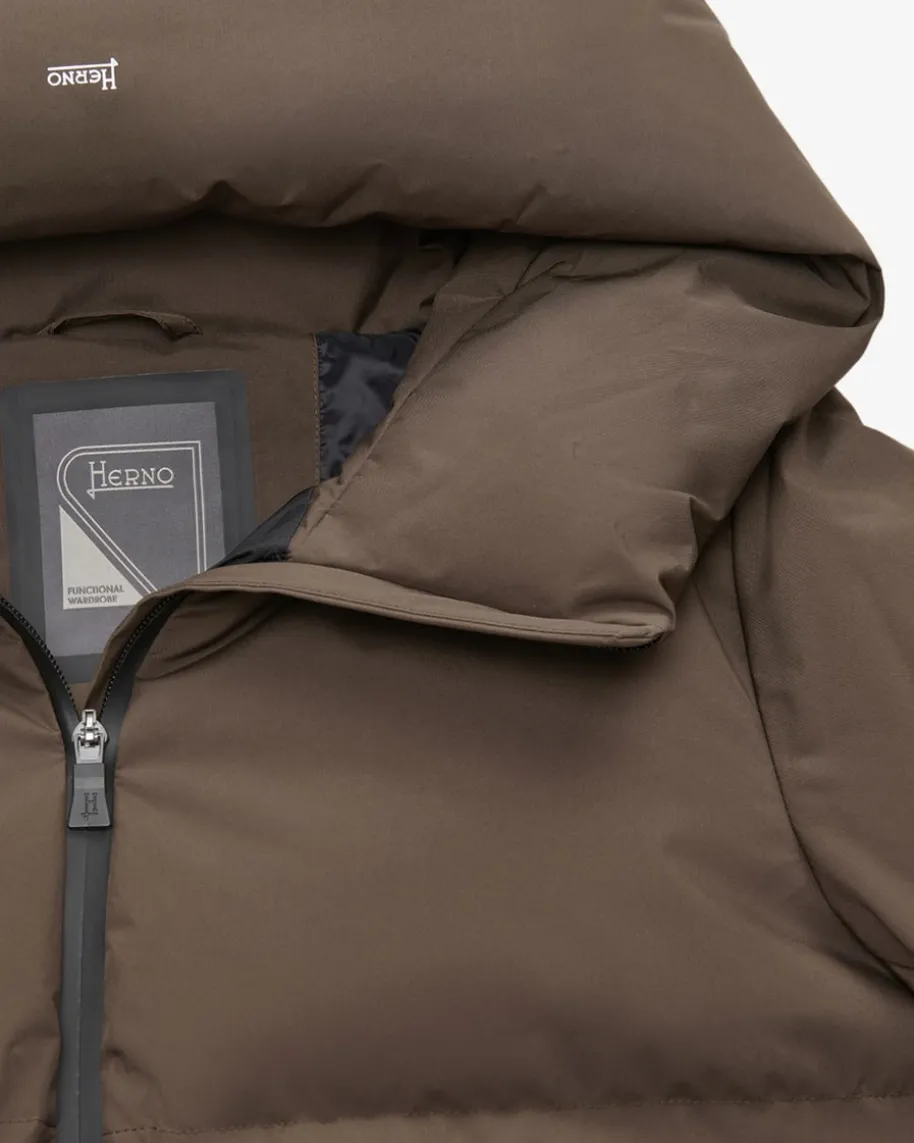 Daunen-Funktionsjacke für Damen von Herno in Khaki. Das italienischeTraditionsunternehmen entwirft seit vielen Jahren luxuriöse Jacken. ZeitloseSchnitte, traumhafte Farben sowie pure Eleganz begeistern genauso, wie einehochwertige und federleichte Daunen-Fütterung. Dieses Modell avanciert dank derwetterfesten und atmungsaktiven Pro-Meteo 2-Lagen-Technik zu einem funktionalenwie auch wärmenden Outdoor-Begleiter.