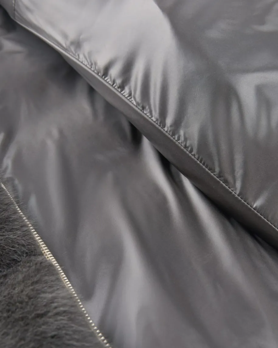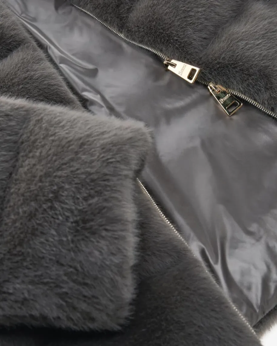 Daunen-Kunstfelljacke für Damen von Herno in Grau. Das italienische PremiumLabel ist seit Jahren bekannt für seine besonders leichten Daunenjacken, die mitzeitlos-sportiven Designs überzeugen. Mit diesem Modell hat Herno einenstilvollen und zugleich warmen Begleiter in weicher Fake-Fur-Aufmachunggeschaffen, der sowohl optisch als auch haptisch überzeugt.