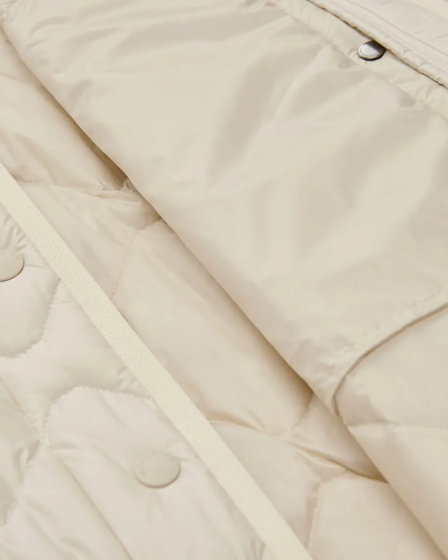 Daunenjacke für Damen von Woolrich in Creme. In modischer Oversize-Passformbesticht das Modell dank der gesteppten Aufmachung als stilvoller Favorit,während die hochwertige Daunen-Feder-Füllung die optimale Wärmeisolierungverspricht.