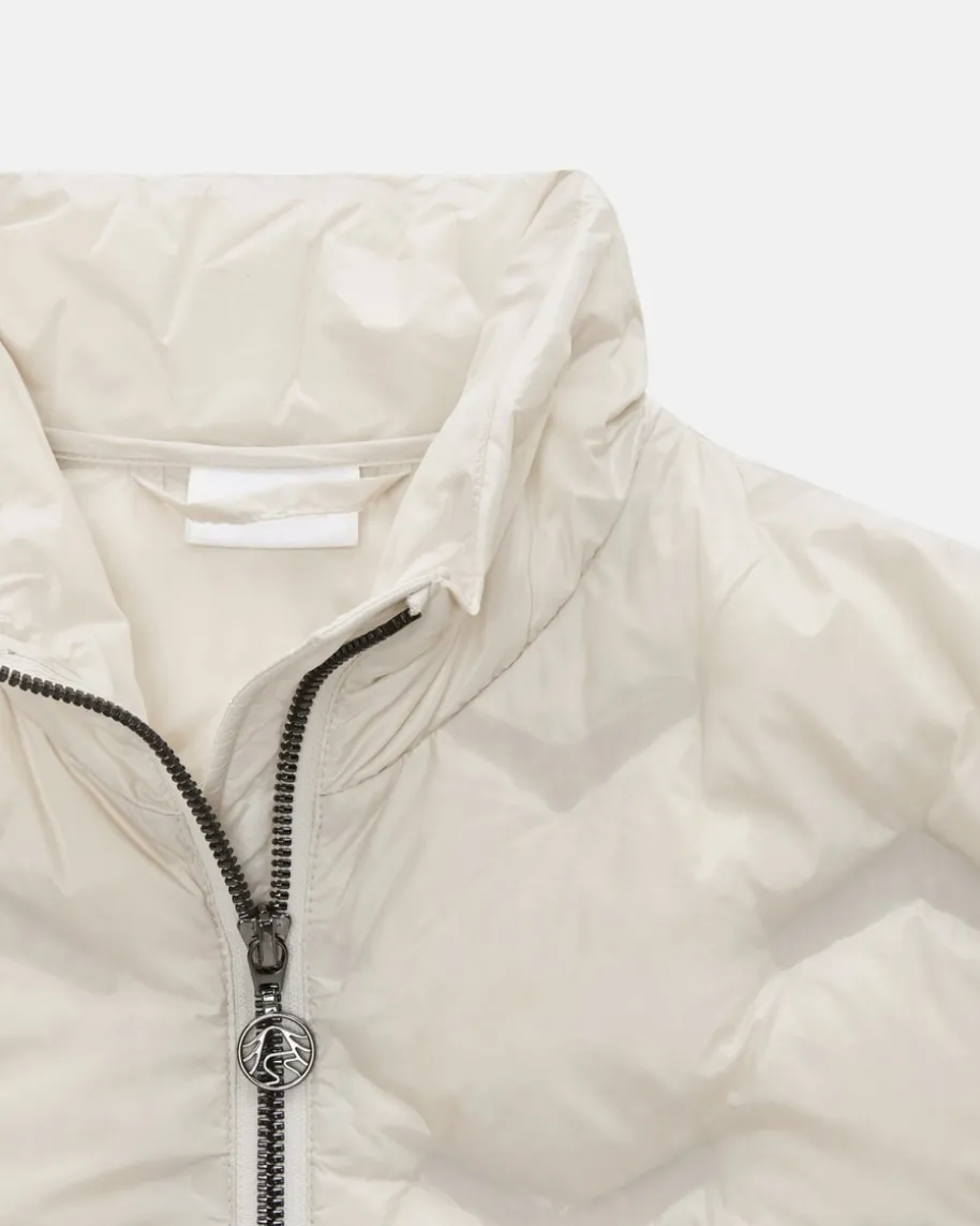 Daunenjacke für Damen von Sportalm Emotion in Hellgrau. Das Modell überzeugt mitraffinierter Prägung in Zackenform und dezent changierender Material-Qualität,während die hochwertige Daunenfüllung für eine angenehme Wärmeisolierung sorgt.Die Logo-Details runden den Look stilvoll ab.