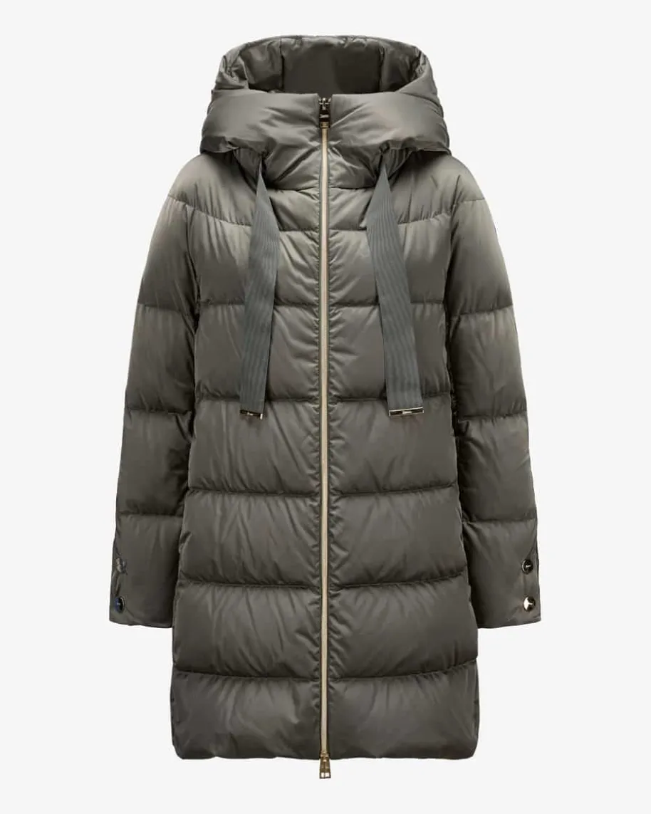 Daunenjacke für Damen von Herno in Graugrün. Das italienischeTraditionsunternehmenentwirft seit vielen Jahren luxuriöse Jacken. Dieses Modell überzeugt nicht nurmodisch mit edlen Details, sondern auch mit hochwertiger Daunenfüllung, die füreine optimale Wärmeisolierung sorgt.
