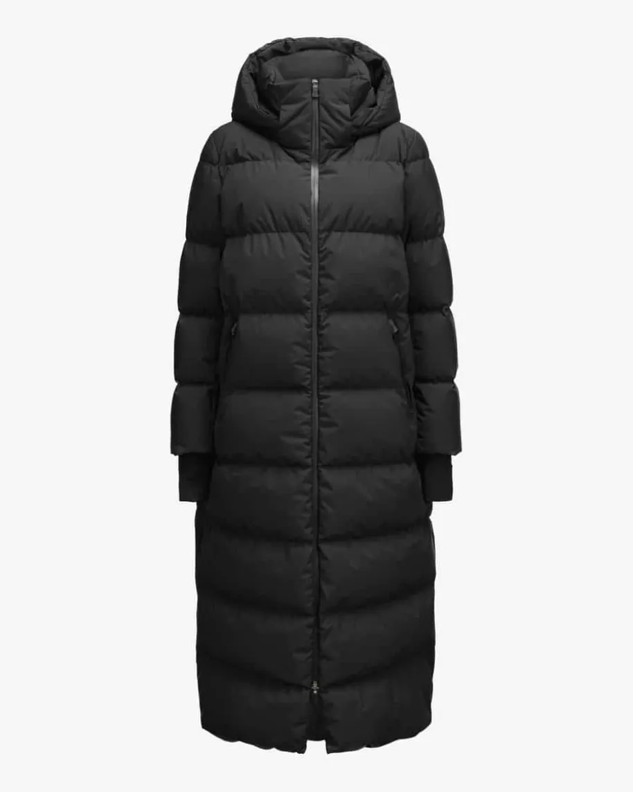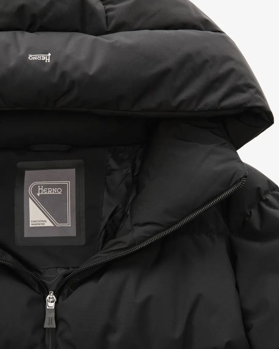 Daunenmantel für Damen von Herno in Schwarz. Das italienische Label hat sich mitseinen besonders weichen und leichten Daunen-Modellen einen Namen in derModebranche gemacht und ist für Liebhaber nicht mehr wegzudenken. Auch dieseslange Modell präsentiert sich in voluminöser Stepp-Optik und hält an kaltenTagen nicht nur warm, sondern punktet auch durch die wasserabweisende Pro MeteoFabric Tool Ausrüstung.