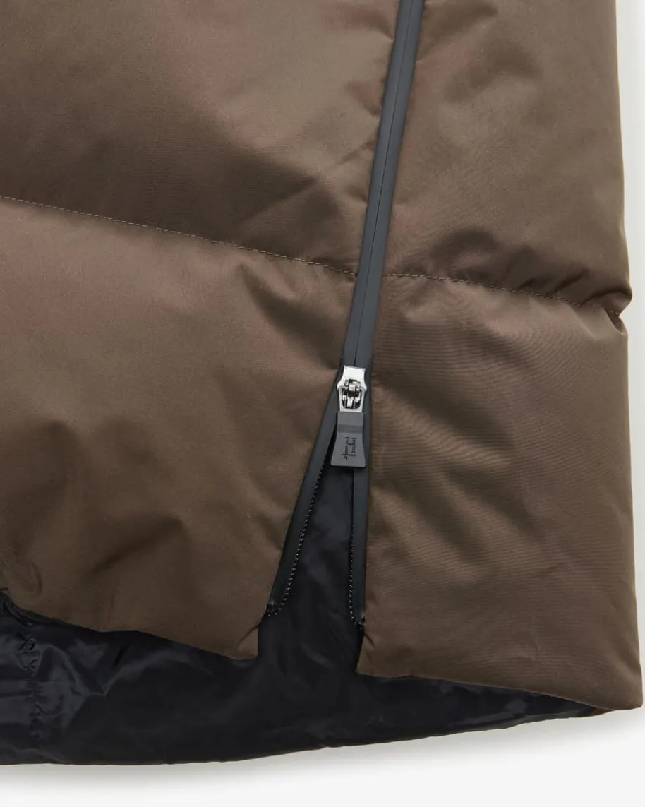 Daunenmantel für Damen von Herno in Oliv und Schwarz. Das italienische Label hatsich mitseinen besonders weichen und leichten Daunen-Modellen einen Namen in derModebranche gemacht und ist für Liebhaber nicht mehr wegzudenken. Auch dieseslange Modell präsentiert sich in voluminöser Stepp-Optik und hält an kaltenTagen nicht nur warm, sondern punktet auch durch die wasserabweisende Pro MeteoFabric Tool Ausrüstung.