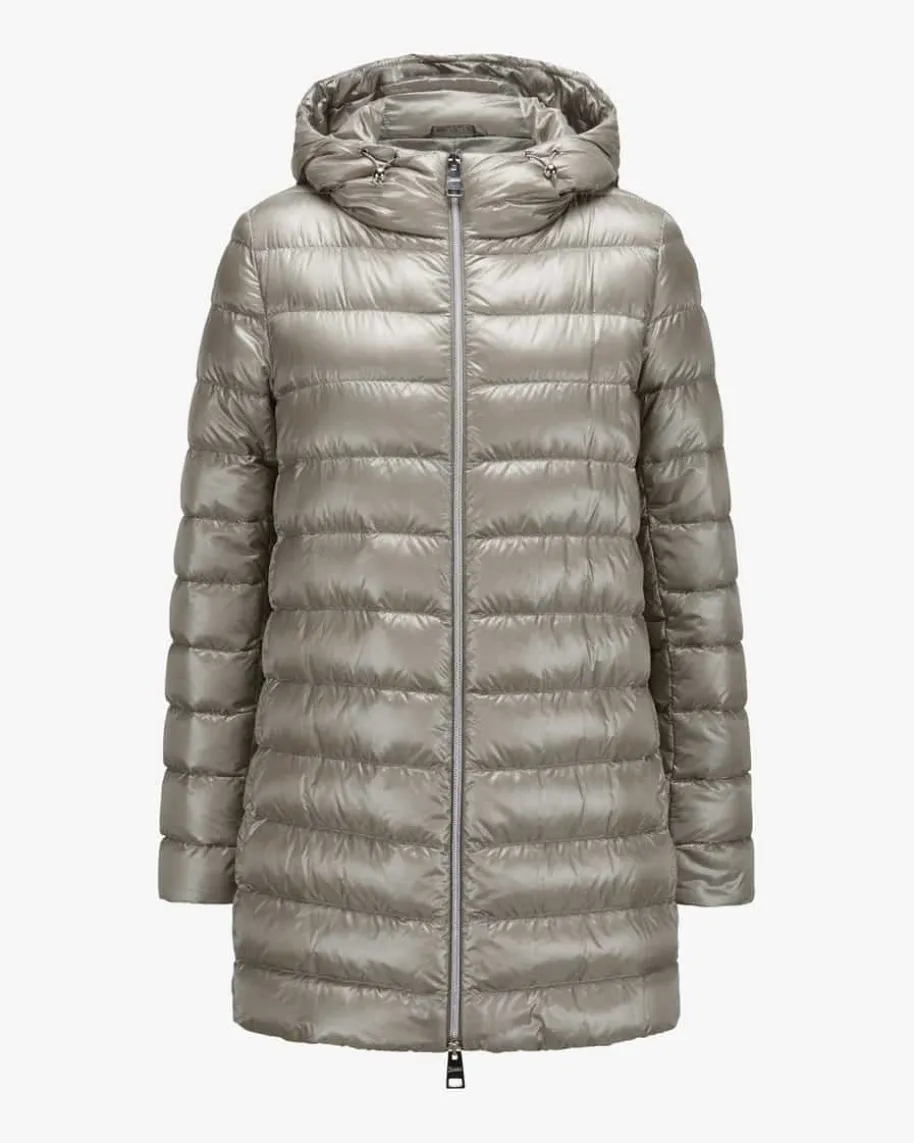 Daunenmantel für Damen von Herno in Grau. Das italienische Premium Labelist seit Jahren bekannt für seine besonders leichten Daunenjacken, die mitzeitlos-sportiven Designs überzeugen. Auch dieses verlängerte Modell begeistertmit changierender Stepp-Optik sowie hochwertiger Daunen-Feder-Füllung, die fürangenehm-warme Tragemomente sorgt.