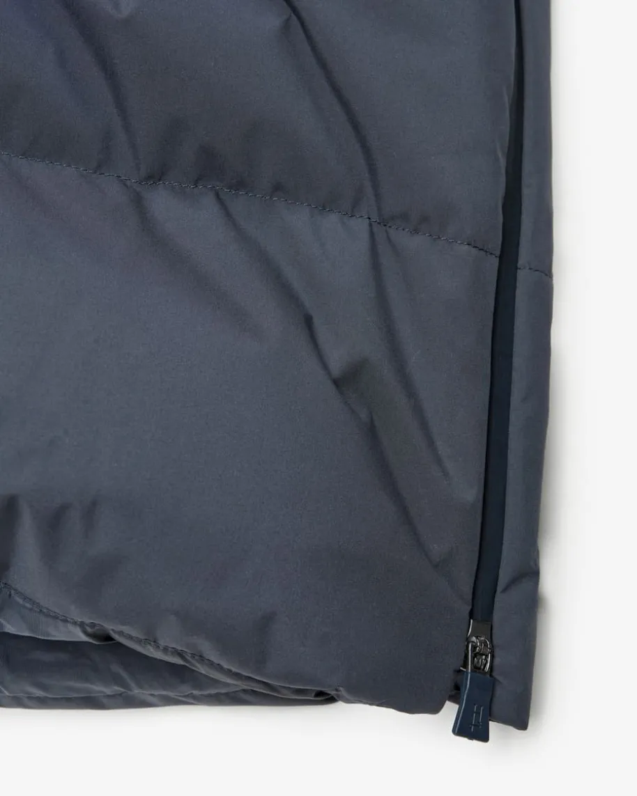 Daunenmantel für Damen von Herno in Navy. Das italienische Label hat sich mitseinen besonders weichen und leichten Daunen-Modellen einen Namen in derModebranche gemacht und ist für Liebhaber nicht mehr wegzudenken. Auch dieseslange Modell präsentiert sich in voluminöser Stepp-Optik und hält an kaltenTagen nicht nur warm, sondern punktet auch durch die wasserabweisende Pro MeteoFabric Tool Ausrüstung.