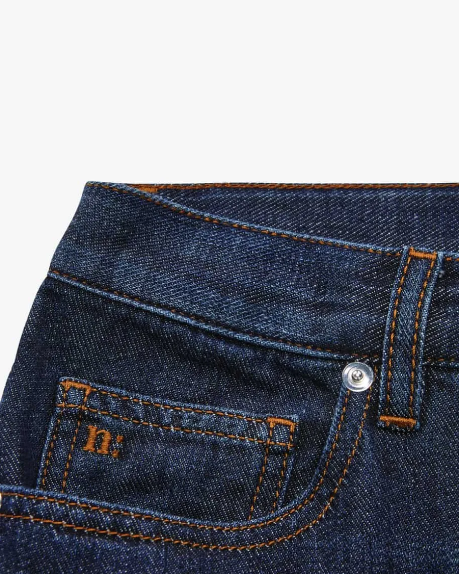 Deepa Jeans für Damen von nine:inthe:morning in Dunkelblau. Das ausgestellteModell präsentiert sich mit klassischen Denim-Details und dezentem Used Look,während die leichte Baumwoll-Verarbeitung für angenehmen Tragekomfort sorgt.