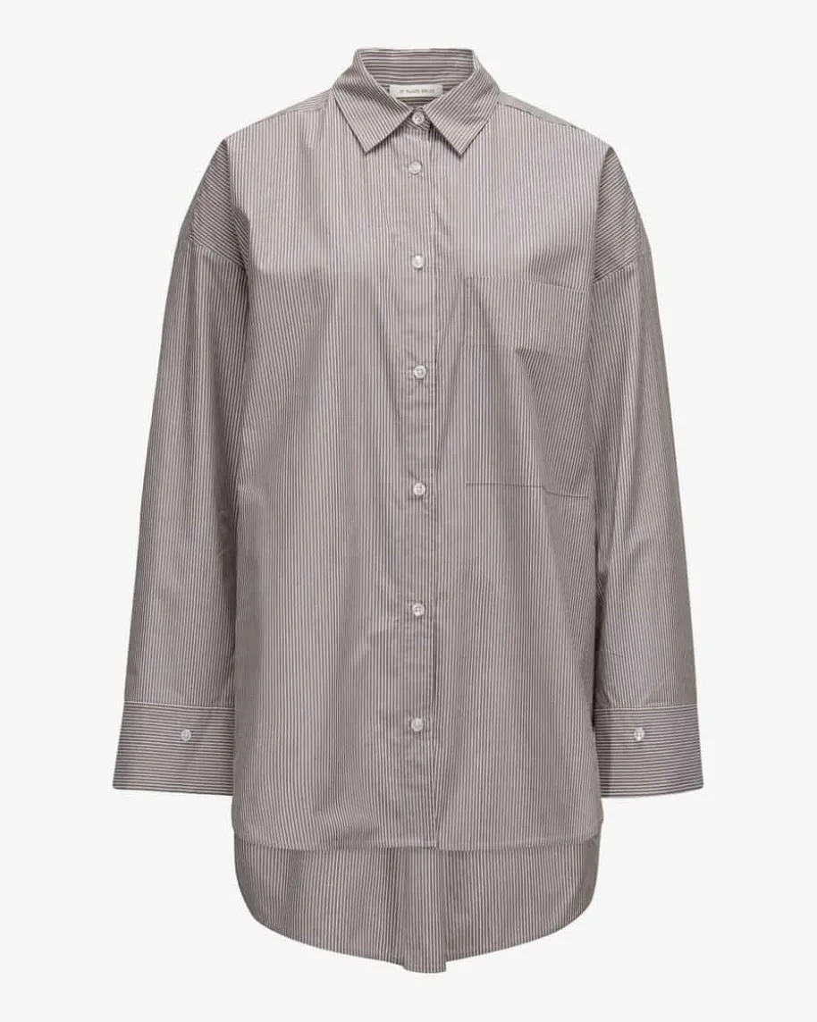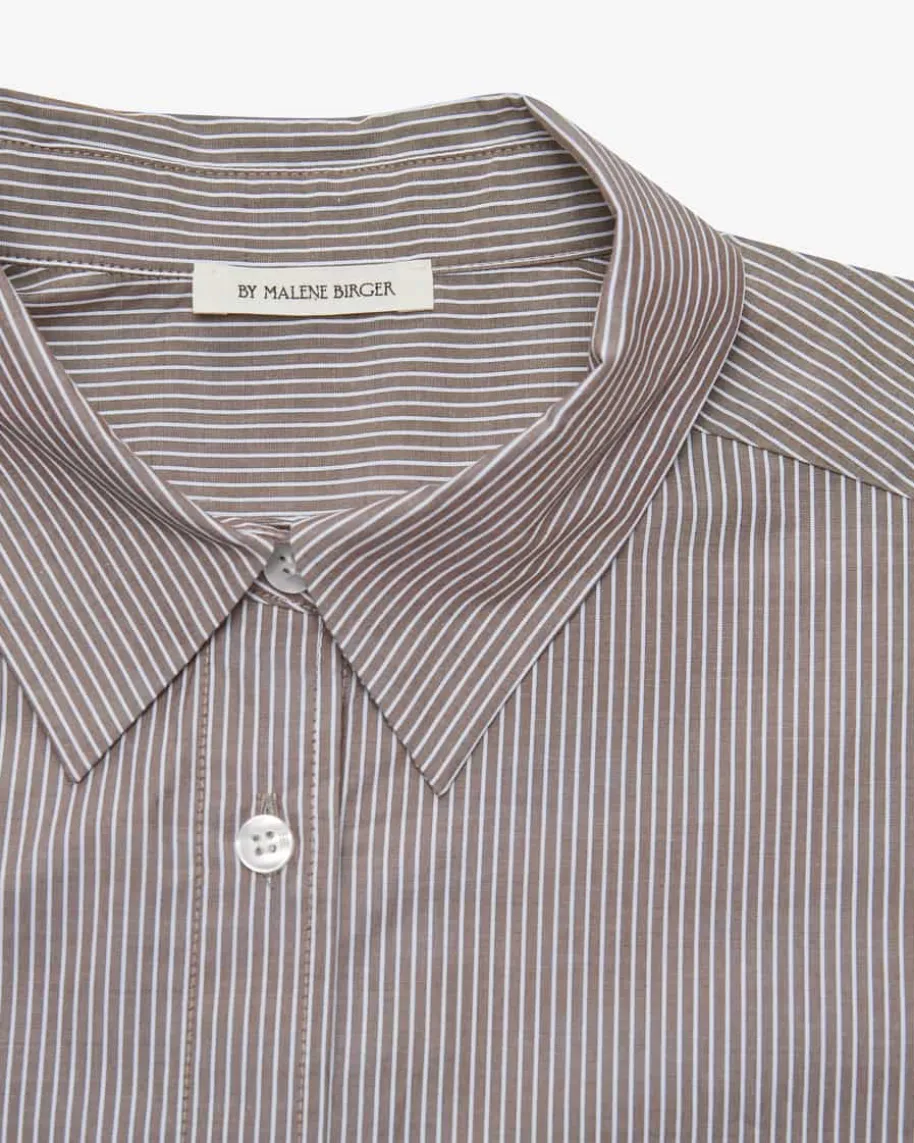 Derris Bluse für Damen von By Malene Birger in Hellbraun und Weiß. Das weitgeschnittene Modell präsentiert sich dank des gestreiften Dessins in modischerAufmachung, während die Bio-Baumwoll-Qualität für angenehme Tragemomente sorgt.