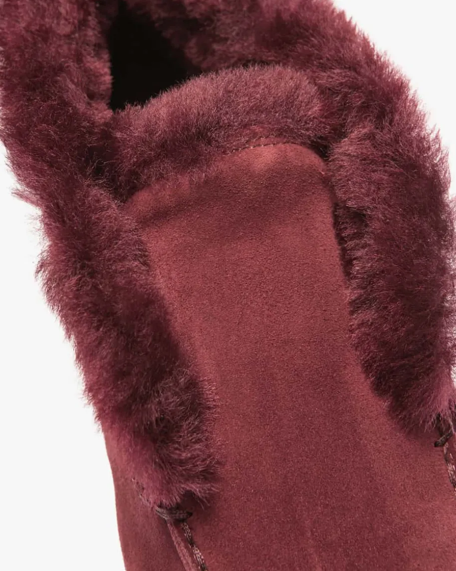 Desert Boots für Damen von Santoni in Bordeaux. Das Modell besticht durch diestilvolle und zugleich zeitlose Aufmachung, während die Verwendung vonhochwertigem Veloursleder den edlen Charakter gekonnt ergänzt. Zugleich hält Siedie weiche Schafsfell-Innenseite auch an kalten Tagen optimal warm.