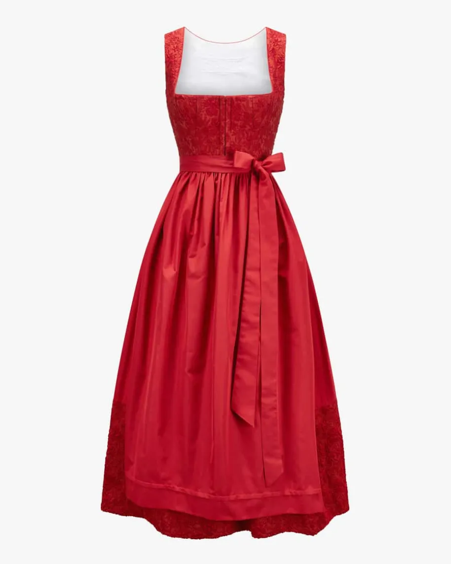 Dirndl lang mit Schürze für Damen von Sportalm in Rot. Für das österreichischeModelabel stehen exklusive Designs sowie höchste Qualitätsstandards im Fokus.Auch dieses Modell punktet dank der strukturierten Optik in modischerAufmachung, während der hochwertige Material-Mix mit Seide den traditionellenCharakter stilvoll untermalen. Zugleich vollendet die dezent changierendeSchürze den Trachten-Look gekonnt.
