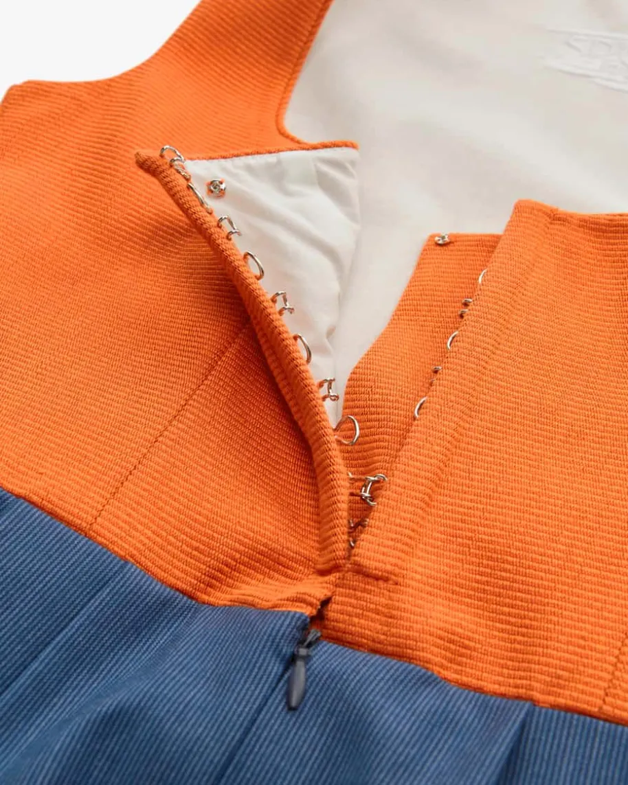 Dirndl lang für Damen von Sportalm in Orange, Dunkelblau und Hellblau. DasModell besticht mit der raffinierten Kombination aus verschiedenen Strukturen,farblich abgesetzter Schürze und Mieder mit Formstäbchen. Die floralenStickereien vollenden den moderne Trachten-Look gekonnt.