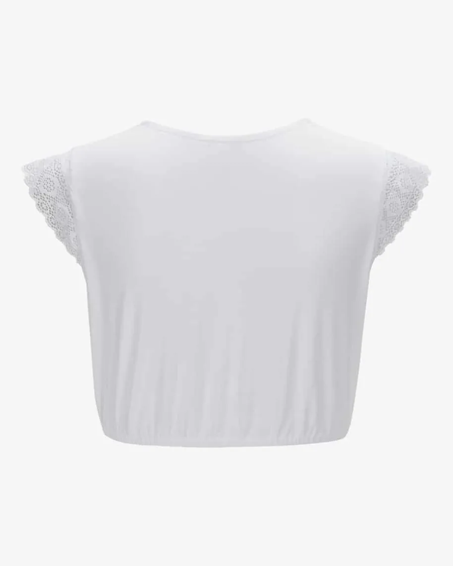 Dirndlbluse für Damen von LODENFREY in Weiß. Das Modell begeistert mitangenehmer Baumwoll-Qualität, während der zarte Spitzen-Einsatz mit dezentenFlügel-Ärmeln das Gesamtbild harmonisch vollendet. Ein perfekter Begleiter fürstilvolle Trachten-Looks.