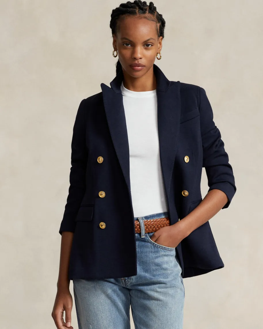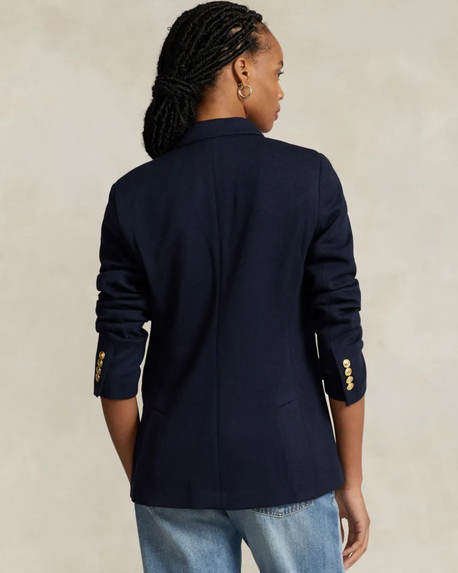 Doppelreiher-Blazer für Damen von Polo Ralph Lauren in Navy.Mit diesem zweireihigen Modellpräsentiert das Label einen eleganten Begleiter, der durchklassische Detailsgekonnt vollendet wird. Wappenknöpfe sorgen zudem für dasgewisse Etwas.