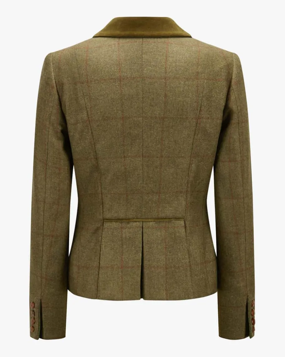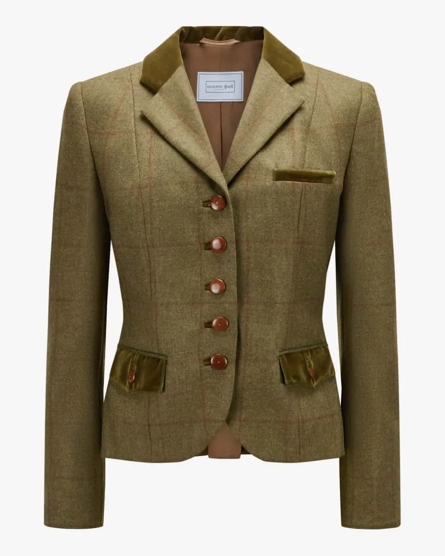 Dorothea Trachtenblazer mit für Damen von Susanne Spatt in Oliv und Braun. AlleModelle von Susanne Spatt werden stets aus hochwertigen Grundmaterialien undkomplett in Österreich gefertigt, um höchsten Qualitätsanforderungen zuentsprechen. Die Kombination aus dem karierten Web-Muster mit weichem Samt-Besatz und raffinierten Knöpfen in Holz-Optik schafft einen femininen Trachten-Look mit klassischem Heritage-Touch.