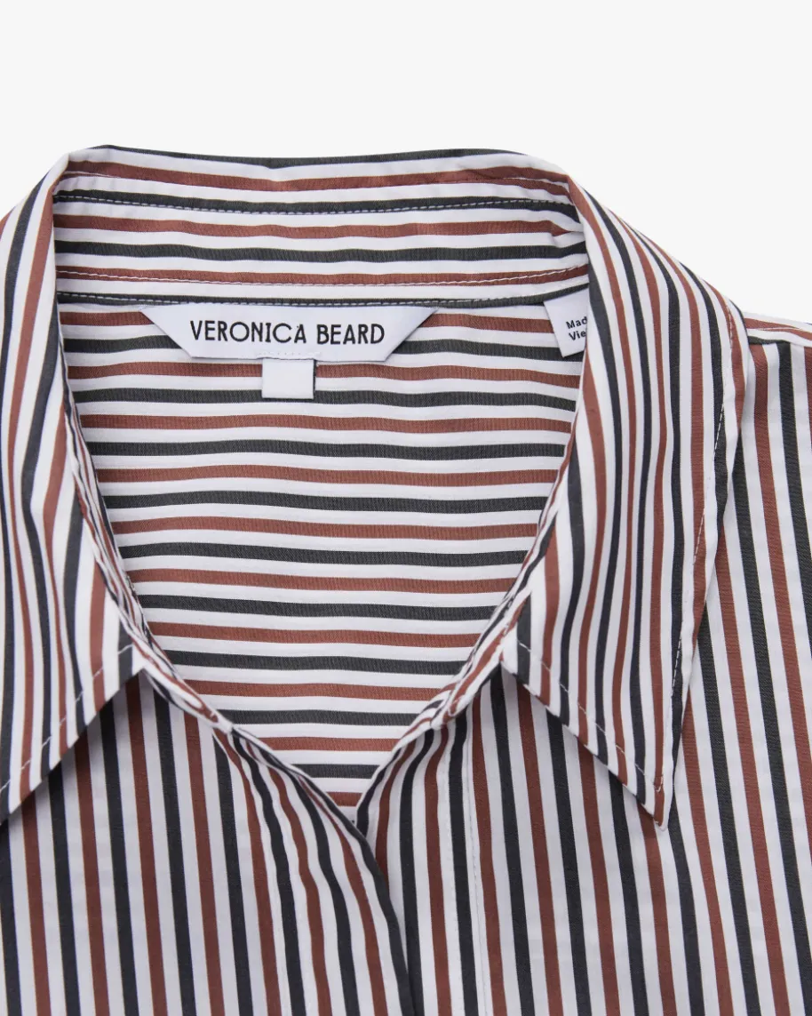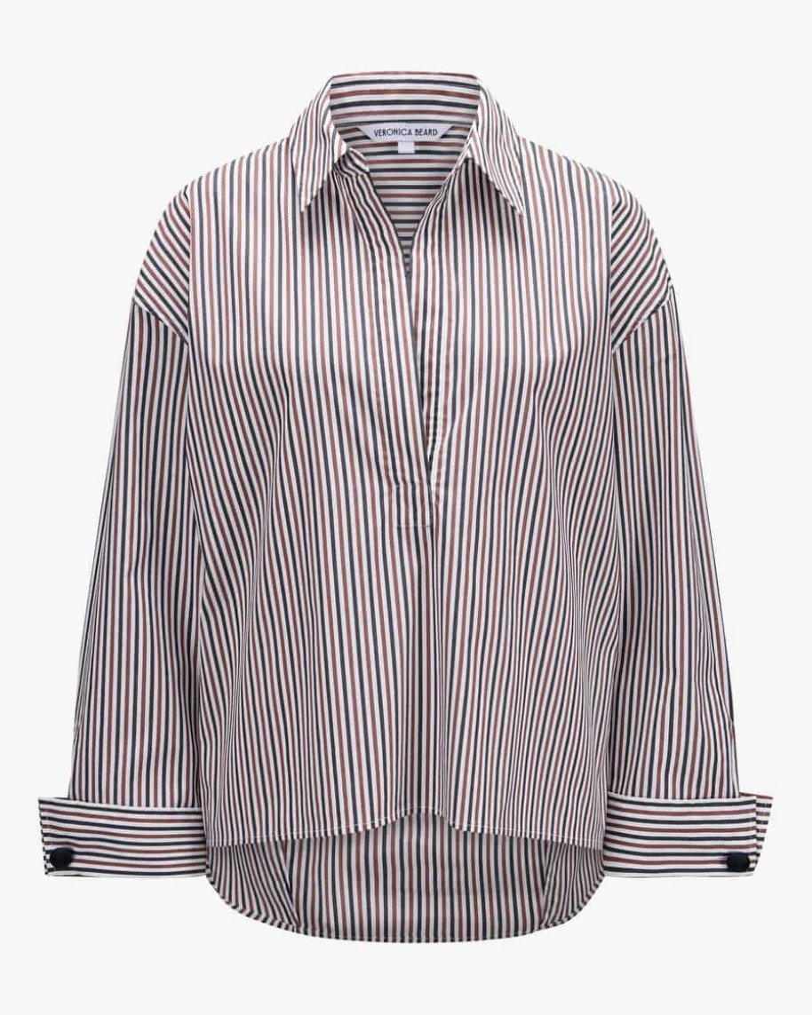 Draymond Bluse für Damen von Veronica Beard in Weiß, Kastanie und Navy. Ein NewYorker Label für clevere Power-Looks mit femininer Note. Auch dieses Modellüberzeugt mit angenehmem Baumwoll-Mix, während das Streifen-Design und derkombinierte Ausschnitt einen femininen Begleiter mit sportiven Touch kreieren.