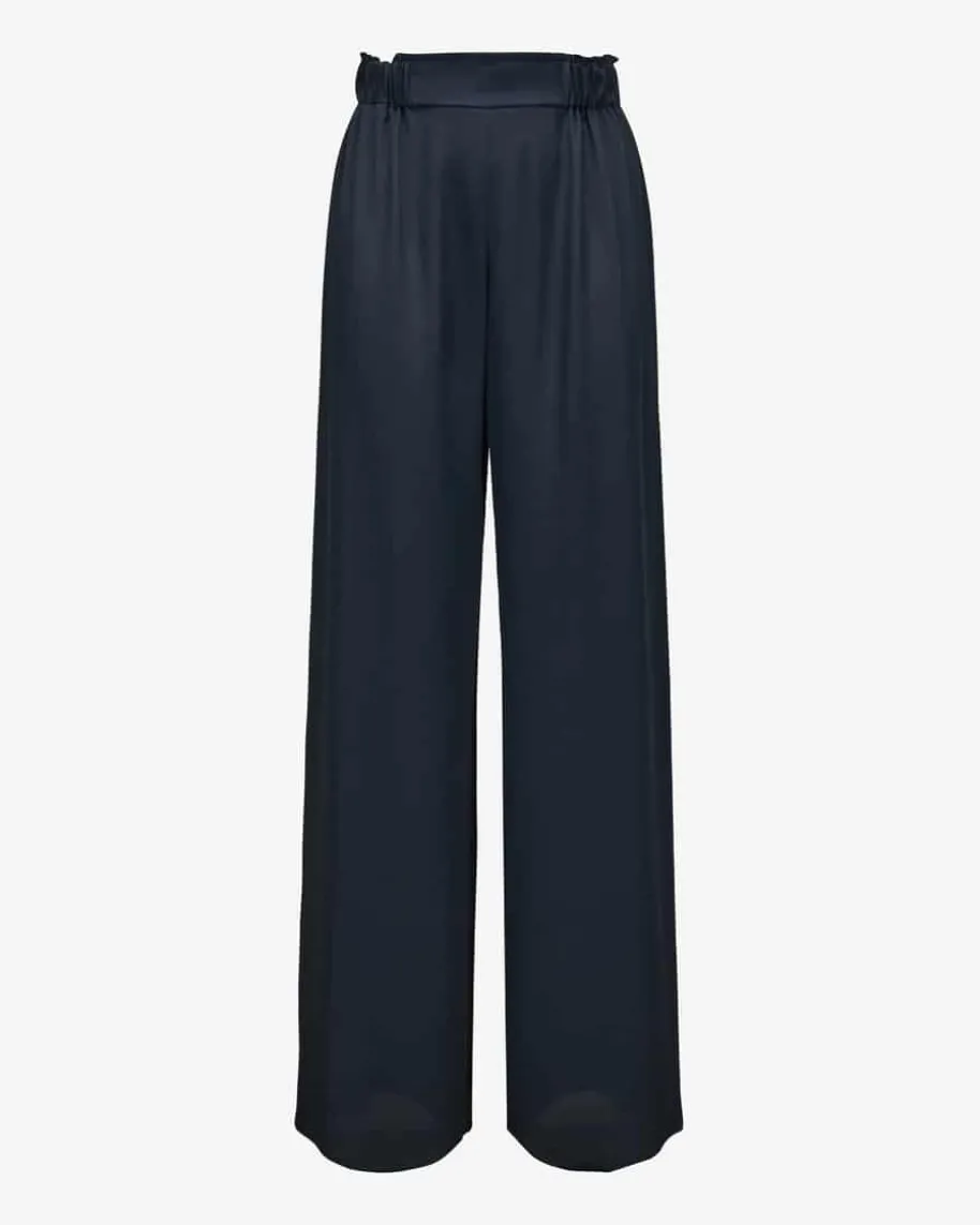 Dusty Hose für Damen von Natan in Marine. Mit diesem Modell hat das belgischeLabel ein besonderes Piece aus angenehm-leichter Crêpe-Qualität geschaffen, dasdank der weiten Schnittführung mit hohem, elastischen Bund zu einem femininenHighlight avanciert, welches zugleich mit hohem Tragekomfort punktet. Kombiniertmit passender Bluse und hohen Schuhen garantiert das Outfit stilsichereAuftritte.