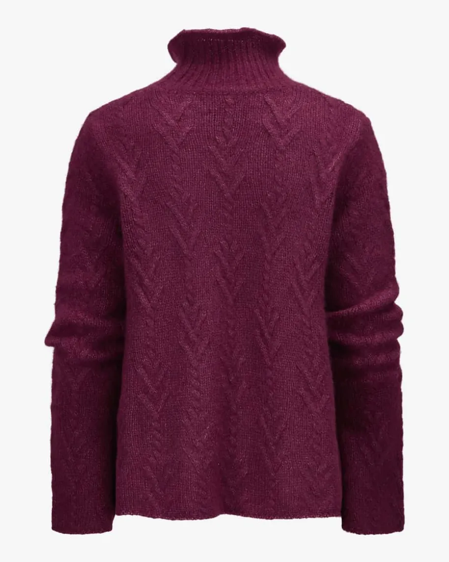 Easton Cashmere-Seiden-Pullover für Damen von Lu Ren in Burgundy. DiesesModell präsentiert sich in weicher Cashmere-Seiden-Qualität, während das moderneStrickmuster einen zeitlosen Strick-Begleiter kreiert.